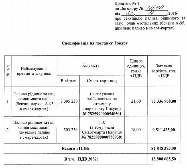 Согласно сообщению, сумма сделки с учетом НДС составила около 82,9 млн грн. Ресурс перейдет в виде топливных смарт-карт.