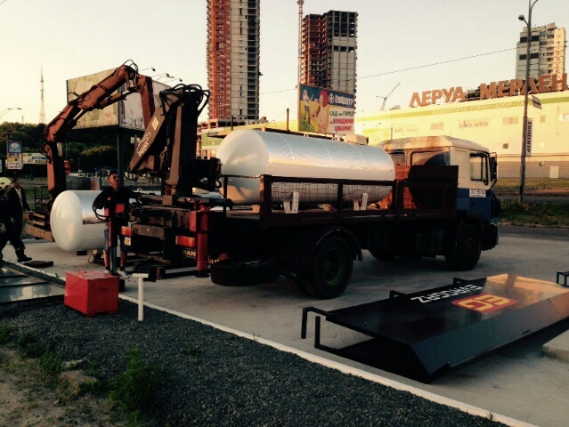 «В 4.00 состоялся первый демонтаж двух АГЗС «Евро Газ» и LP-GAZ по ул. Саперно-слободская в Голосеевском районе г.Киева. Владельцы обеих заправок осуществили незаконный захват городской земли, разместили газовые модули под линиями электроперечач, в пределах красных линий с нарушением охранных зон подземных коммуникаций и т.д.», - об этом говорится в заявлении КМДА.