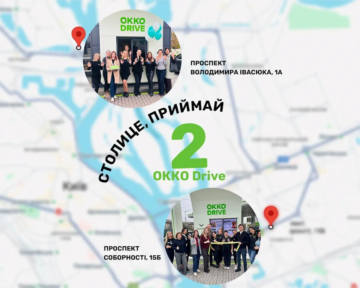 Точки продажів їжі та напоїв OKKO Drive відкрилися одразу на двох заправних станціях в Києві, повідомила мережа OKKO на сторінці у FaceBook.