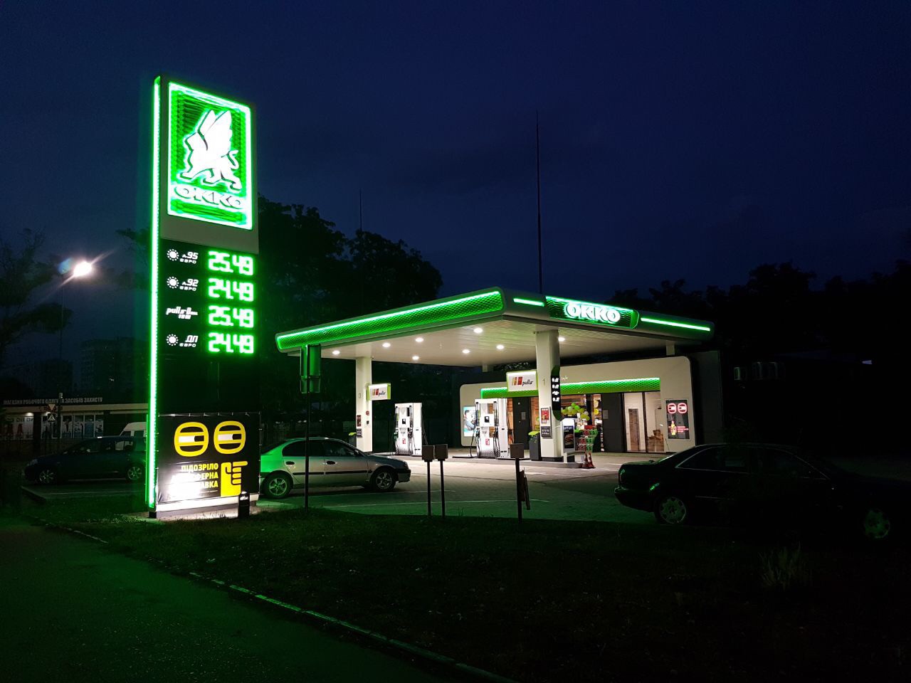 В Днепре по улице Космической, 32/А, работают сразу восемь колонок для заправки. На новых АЗК также можно заправиться брендовой маркой дизельного топлива Pulls Diesel, а еще у клиентов есть возможность заказать вкусные блюда в дорогу в кафе или из тепловой витрины, приобрести необходимые товары в магазине.