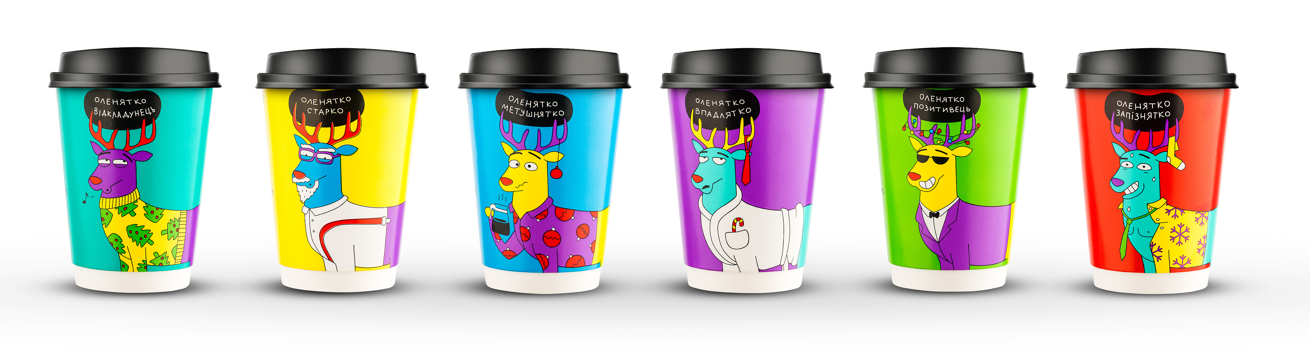 Лимитированная серия кофейных стаканчиков уже появились на всех АЗК. В этом году главными персонажами праздничной кампании стали веселые оленята - Позитивець, Старко, Запізнятко, Метушнятко, Впадлятко и Відкладунець. Каждый из них по-своему готовится к праздникам. Так, олененок Позитивець с нетерпением ждет Нового года и радуется каждой снежинке; Старко устал от громких гуляний, а Метушнятко спасается от предновогодней беготни ведерком кофе.