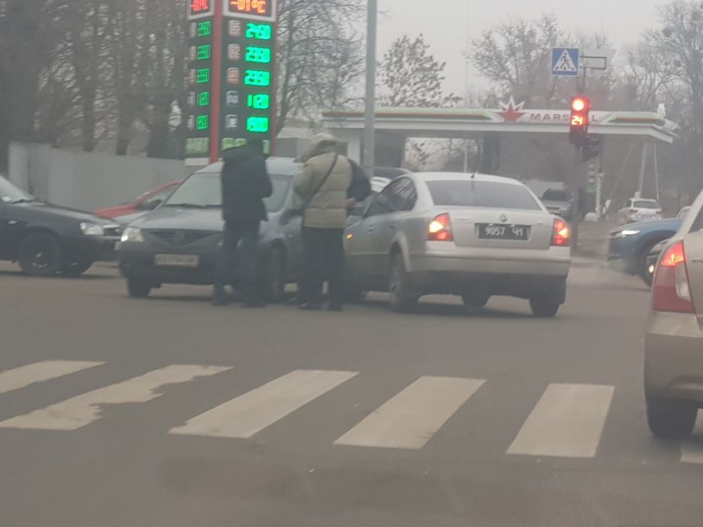 Два легковых автомобиля столкнулись утром 28 января около АЗС Marshal на перекрестке спуска Веснина и улицы Пушкинской в Харькове .