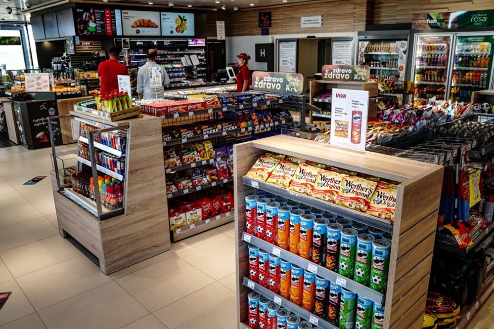 На АЗС працює крамниця з супутніми товарами OMV VIVA, а також VIVA Cafe, де можна придбати перекуси каву та інше. Зокрема, в закладі пропонують свіжоприготовані сендвічі та свіжовичавлені соки, різноманітну випічку та широкий вибір кавових напоїв.
