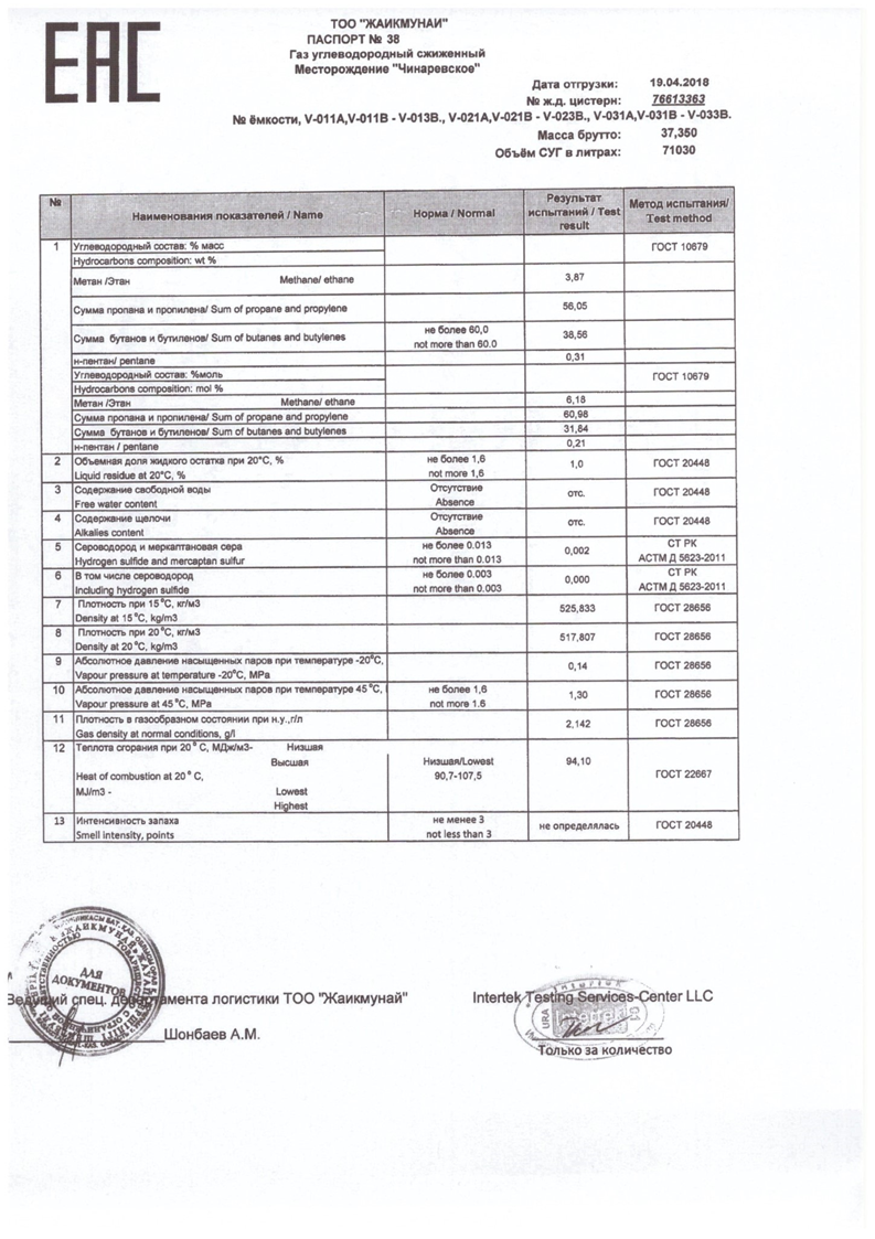 Согласно паспортных данных ресурс произведен на ГПЗ при Чинаревском месторождении казахской компании «Жаикмунай».