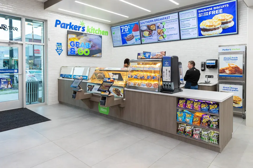 Нова АЗС Parker's зосереджена на пропозиції високоякісної їжі на виніс та популярних товарів. Серед акцентів: хрусткі курячі стріпси (Chicken Tenders), жувальний лід (Chewy Ice). Для тих, хто заїжджає на АЗС зранку, доступні гарячі бісквіти на сніданок, йдеться у повідомленні компанії.