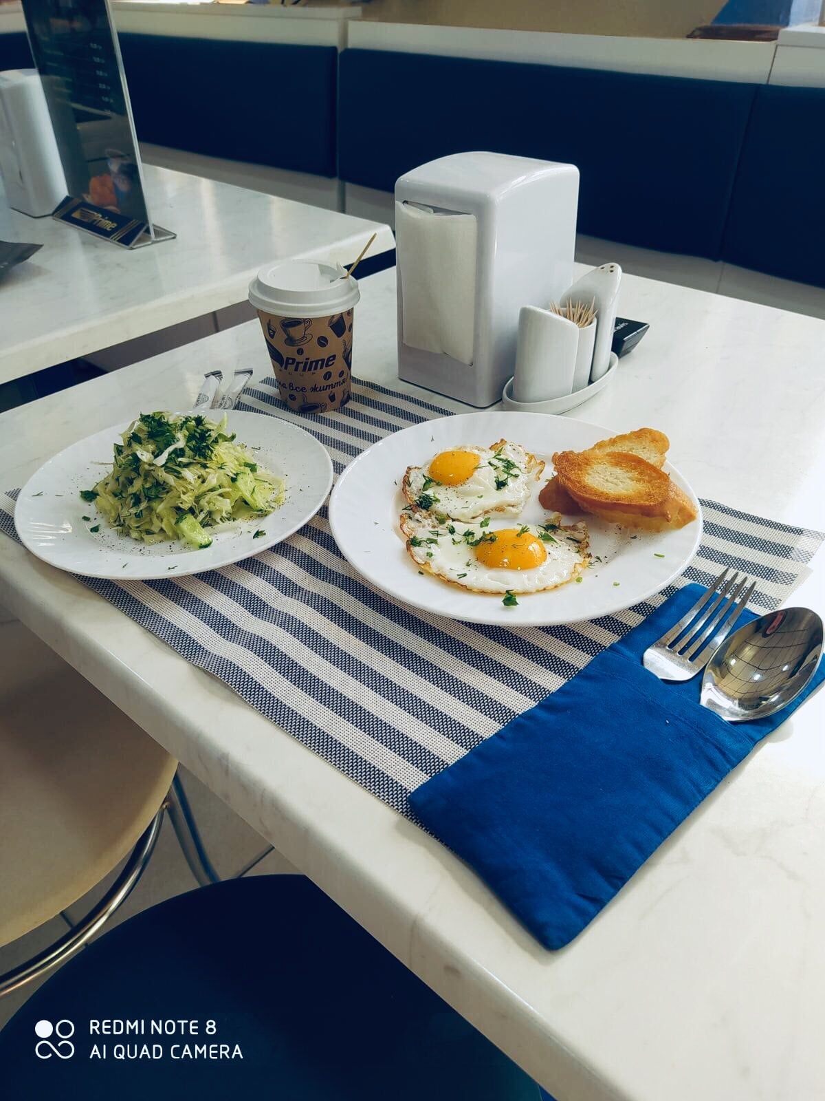 Цена 75 гривен за сутки. В стоимость входит завтрак (на фото ниже). Расчетное время 10 утра.