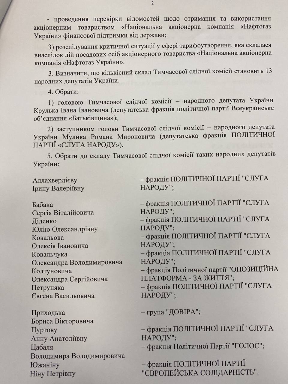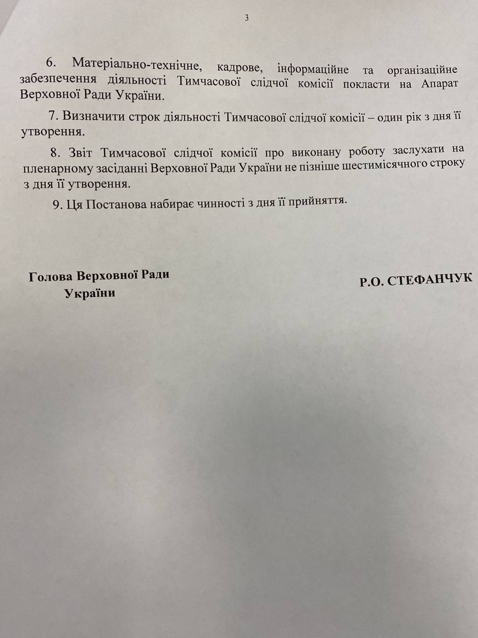 Верховная Рада проголосовала за проект 266 голосами "За". Главой комиссии стал депутат от Батьківщини Крулько Иван. Срок полномочий - один год.