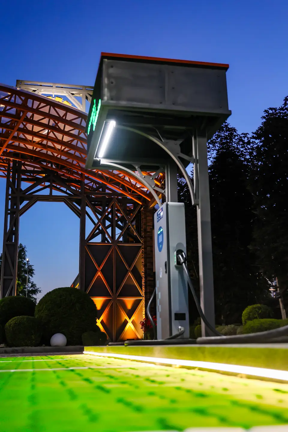 Зарядна зона оснащена LED-навісами, зеленою розміткою та QR-навігацією. Станції підтримують міжнародні стандарти CCS2, GB/T та CHAdeMO, а також підходять для Tesla (через адаптер), Audi e-tron, BMW iX, Porsche Taycan, Zeekr, BYD, Hyundai IONIQ, Kia EV6 та інших сучасних моделей EV.
