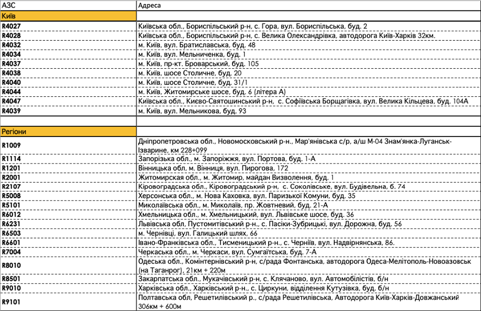 Список АЗС где работают сотрудники главного офиса:
