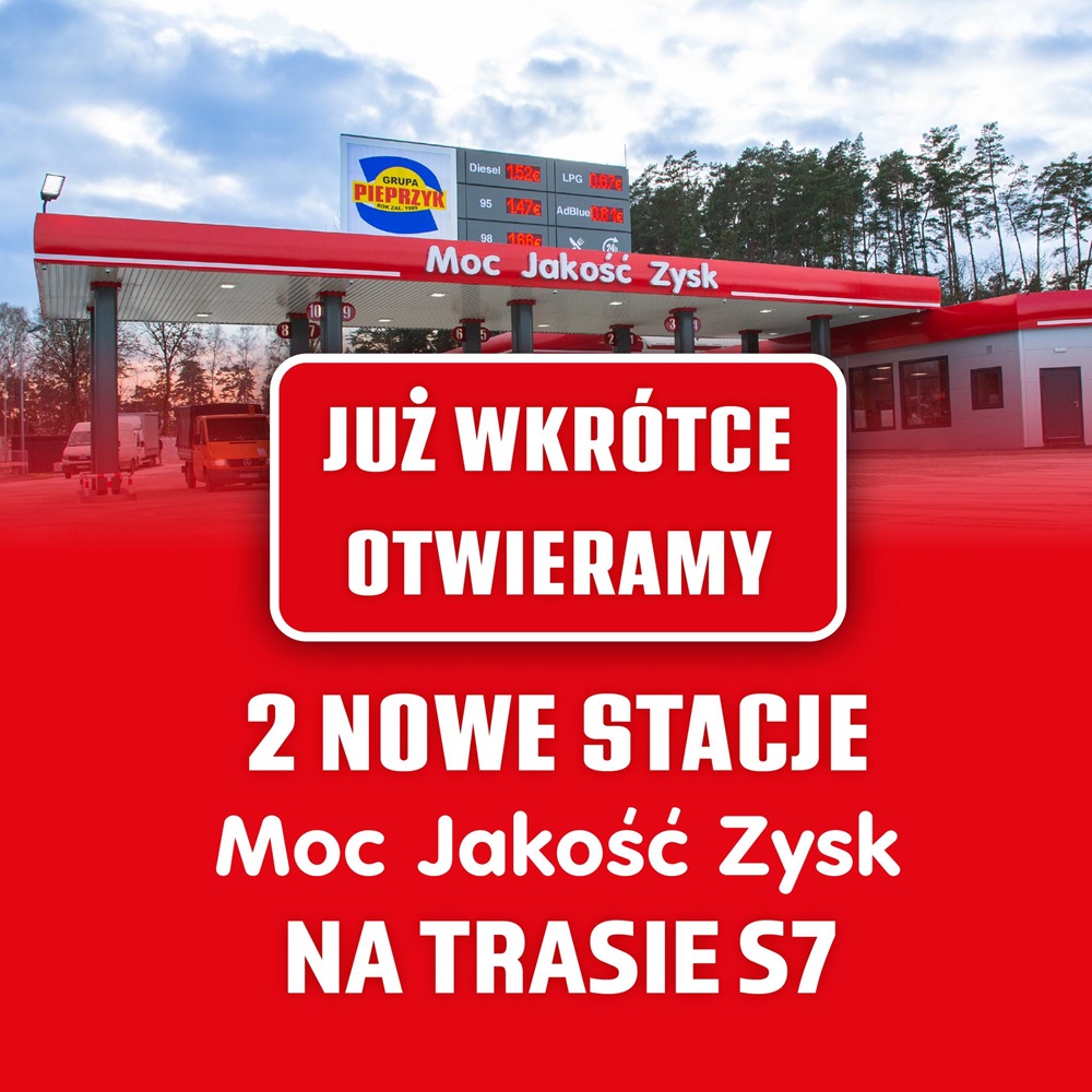Польська група Pieprzyk запускає дві нові заправні станції у Польщі під брендом Moc Jakość Zysk. Про це компанія повідомила на своїй сторінці у FaceBook.
