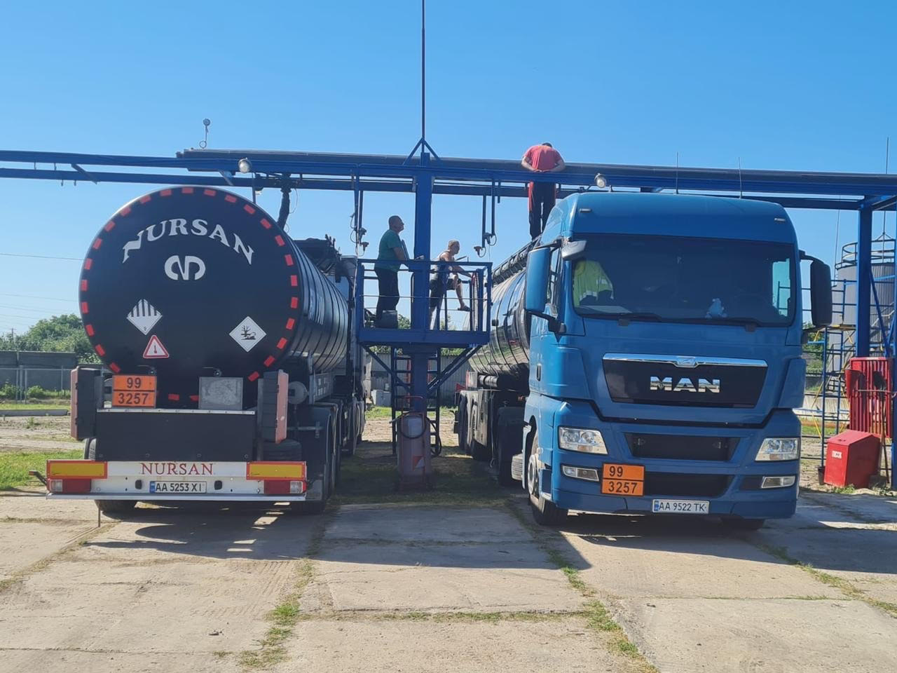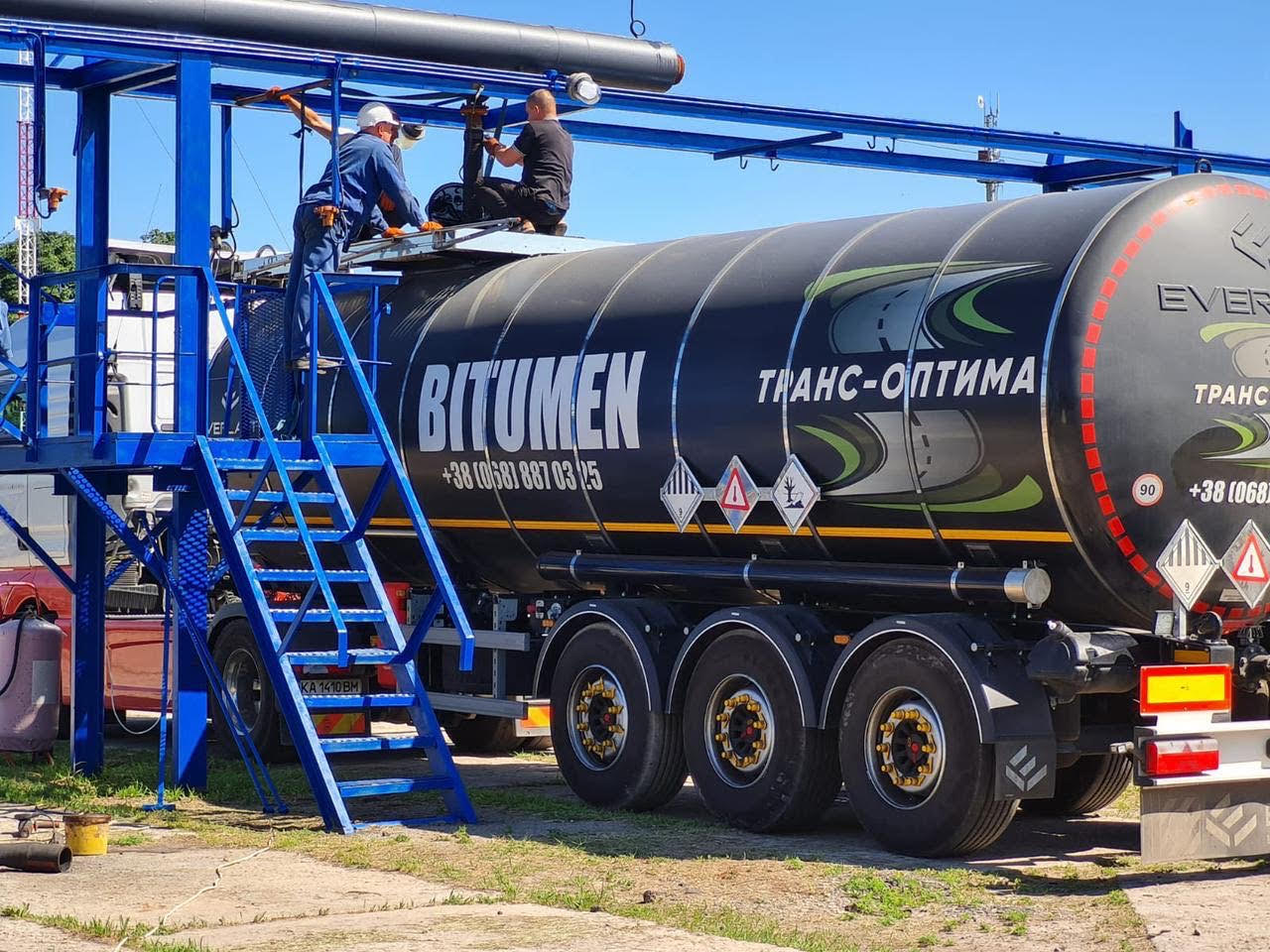 Загрузка автомобилей происходит на эстакаде. На погрузку одновременно становятся два битумовоза. Битум, разогретый до 175 градусов по цельсию, загружается двумя насосами мощностью по 30 м3/час, которые обеспечивают загрузку двух битумовозов за 45 минут. При реконструкции базы – были обновлены трубопроводы, утеплены и обшиты профлистом, поставлены новые задвижки, что минимизирует теплопотери и позволяет увеличить скорость погрузки битума.