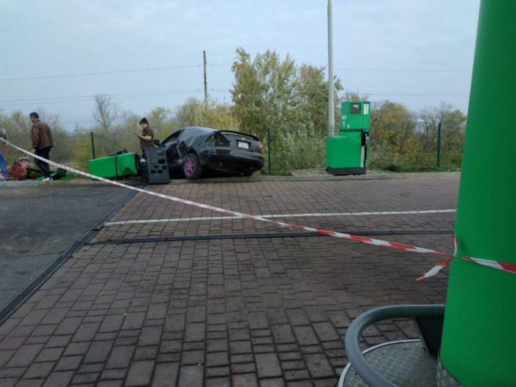 На выезде из Николаева в направлении Одессы произошло ДТП. Водитель Honda Accord на большой скорости убегал от полиции. Он не справился с управлением, съехал с дороги и протаранил ТРК на АЗС WOG.