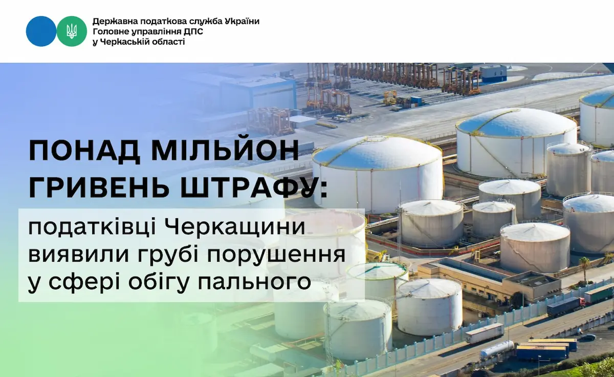 На Черкащині податкова служба виявила місце зберігання нафтопродуктів за відсутності витратомірів-лічильників та реєстрації акцизного складу, що призвело до нарахування понад 1 млн грн штрафу. Про це повідомило Головне управління ДПС у Черкаській області.