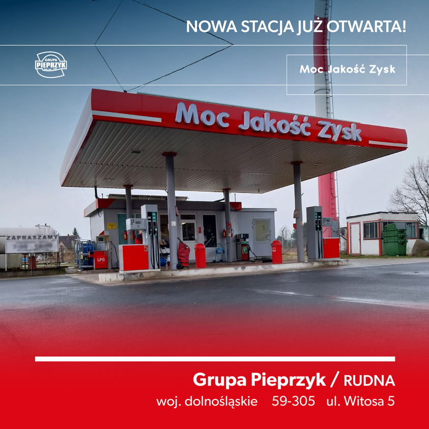 Нова станція знаходиться в селі Рудна в Любінському повіті в західній частині Польщі. АЗС продає усі види палива: 95-й бензин, дизель та скраплений газ. На станції працює мінімаркет, де можна придбати продукти харчування, снеки та автоаксесуари. Незабаром на станції запрацює також Pieprzyk Cafe, де клієнти зможуть купити каву та закуски.