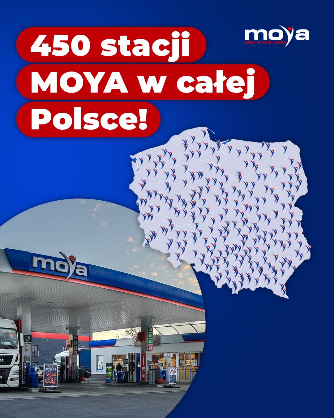 Польська мережа MOYA зросла до 450 АЗС. Про це компанія повідомила на своїй сторінці у FaceBook.