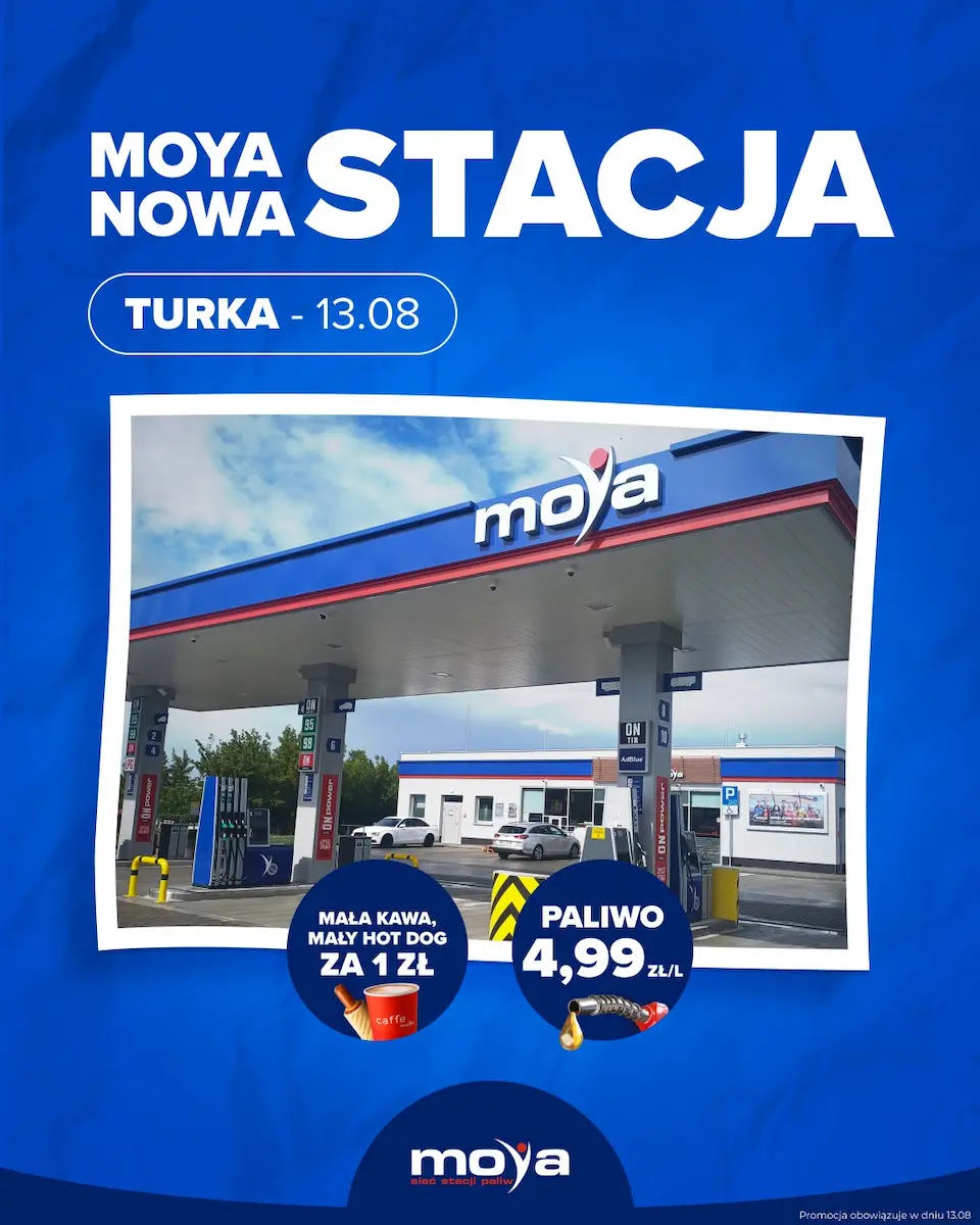 Польська мережа автозаправних станцій MOYA відкрила нову АЗС у населеному пункті Турка поблизу Любліна. Заправка розташована за адресою вул. Соснова, 6.