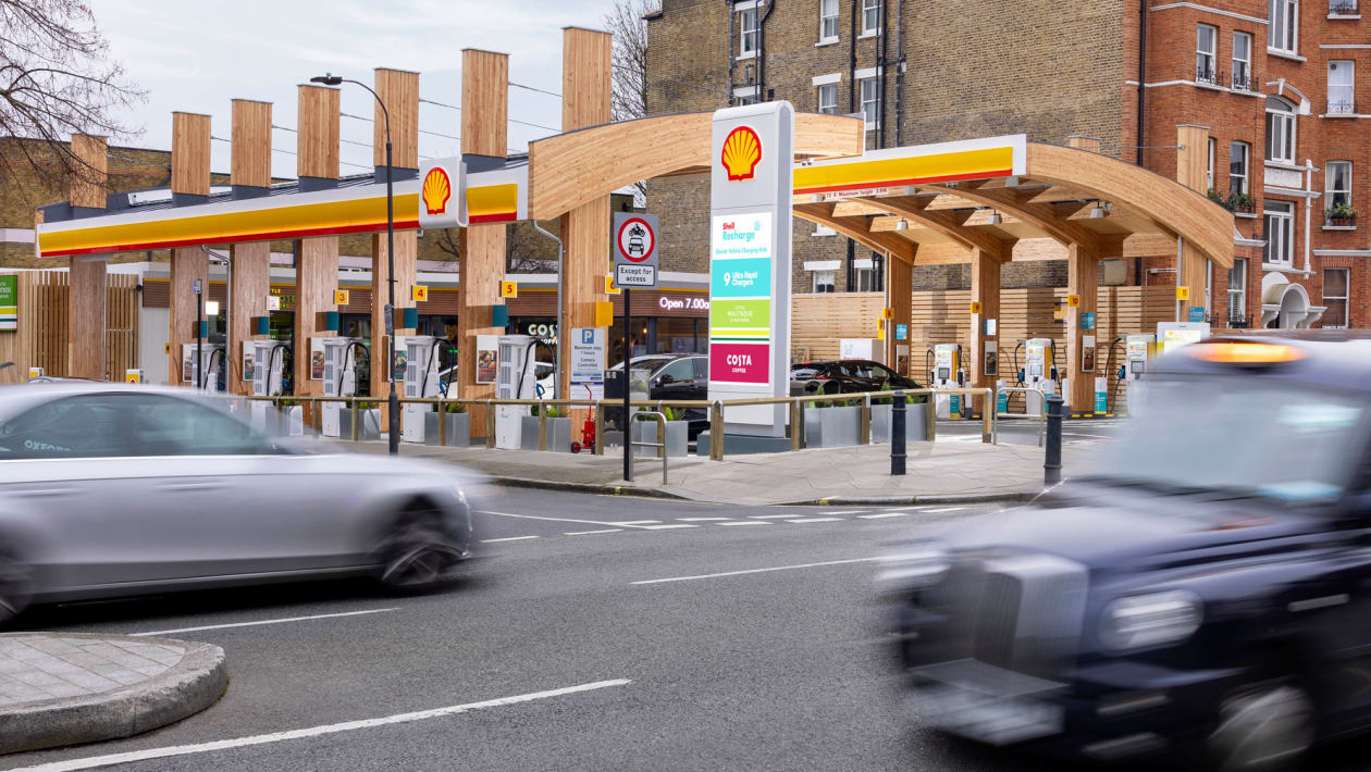 Обновленная станция Shell Recharge Fulham теперь обслуживает исключительно электромобили: на ней установлены девять точек зарядки мощностью 175 кВт каждая (зарядные устройства работают на 100-процентной возобновляемой энергии). Для частичного покрытия энергозатрат вся крыша кафе и магазина при АЗС покрыта солнечными батареями.