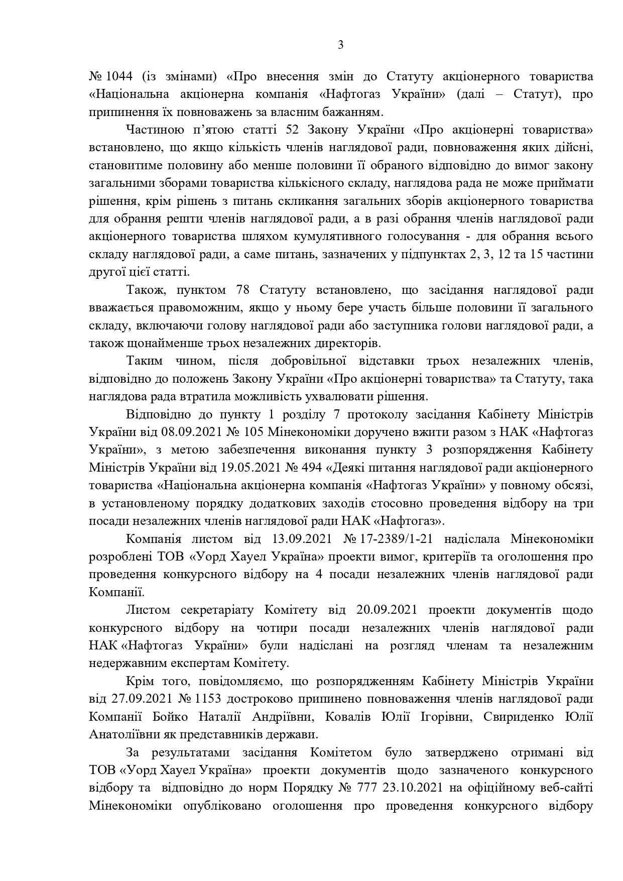 Правительством принято распоряжение Кабинета Министров Украины от 22.09.2021 No 1143 «Некоторые вопросы осуществления мер государственного финансового контроля по акционерному обществу «Национальная акционерная компания «Нафтогаз Украины» и хозяйственных обществ, предприятий, филиалов, представительств, управление которыми осуществляет акционерное общество (далее – распоряжение No 1143). Об этом говорится в ответе Минэкономики на запрос НефтеРынка.