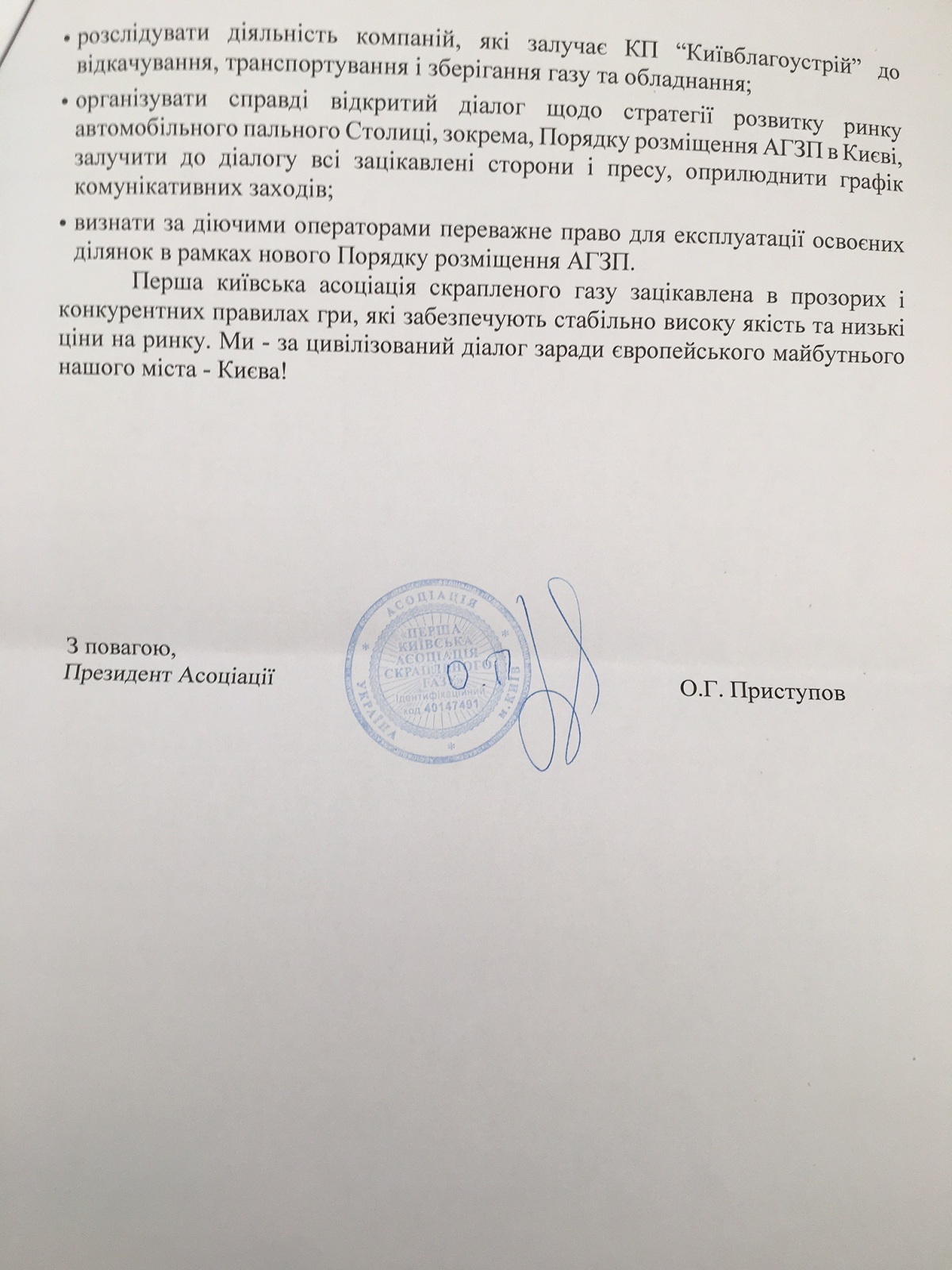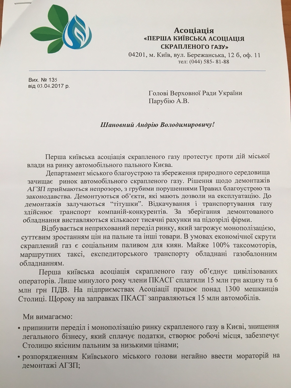 «Первая киевская ассоциация сжиженного газа заинтересована в прозрачных и конкурентных правилах игры, которые обеспечивают стабильно высокое качество и низкие цены на рынке», - говорится в обращении ПКАСГ на имя спикера Рады А. Парубия.