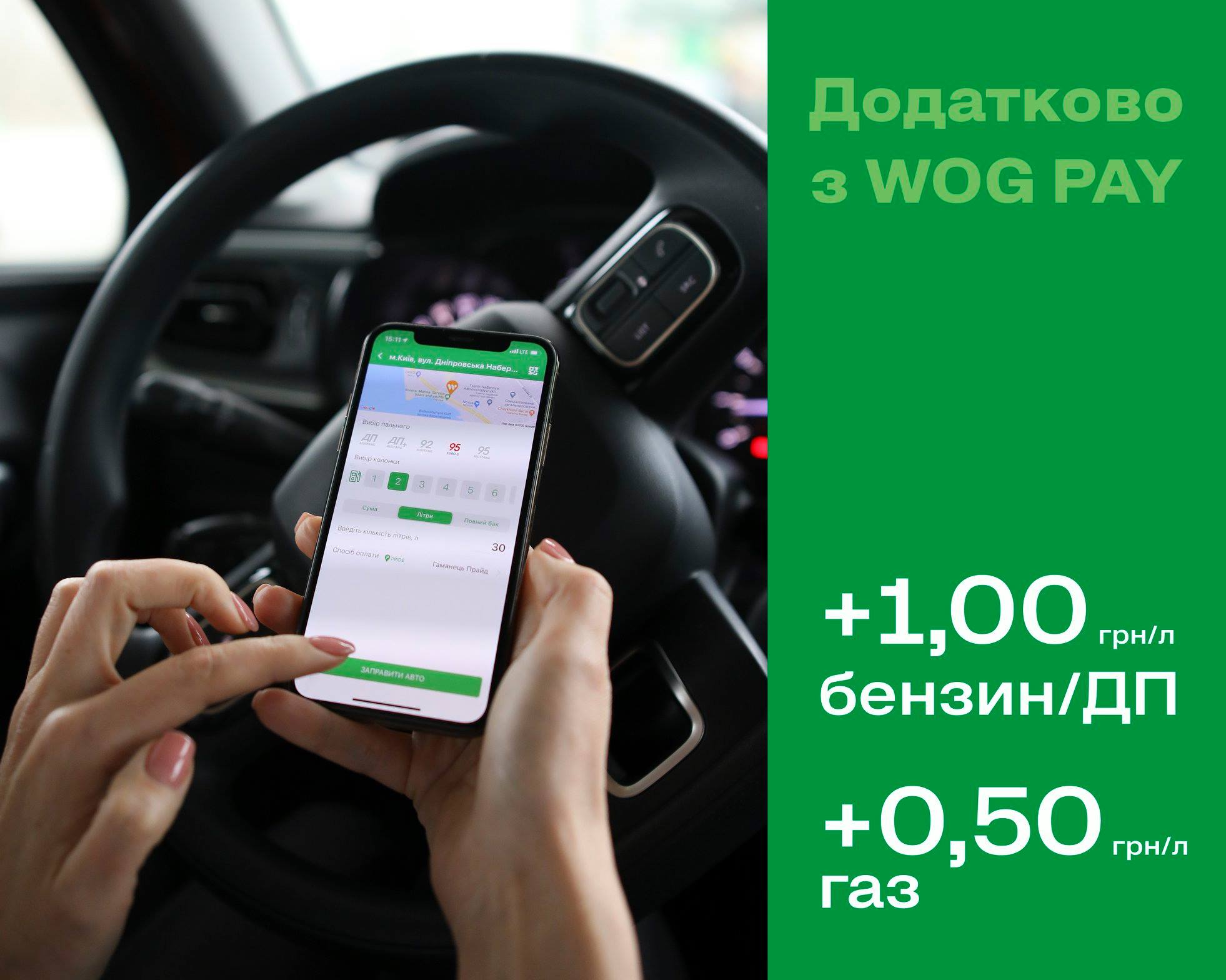 В сети АЗК WOG при заправке через WOG Pay действует скидка 1 грн/л на бензин/дт, 0,50 грн/л на газ. Об этом сообщили в компании.