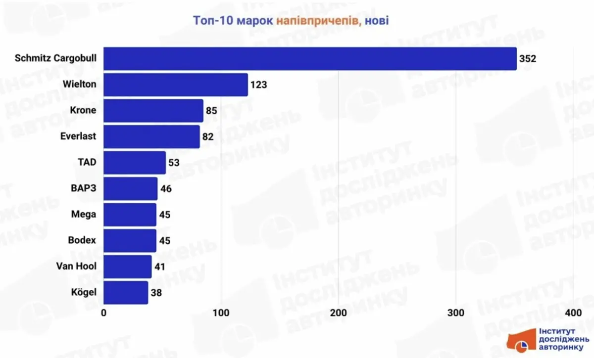 Найпопулярнішими марками нових напівпричепів у січні були Schmitz Cargobull з 352 реєстраціями, Wielton (123 од.) і Krone (85 од).