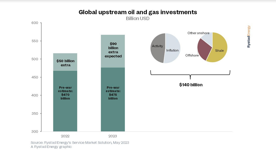 Найбільше збільшились інвестиції у видобуток нафти та газу зі сланців – додатково на $80 млрд. Активність сланцевих компаній зросла на 30%, а ціни на нафтосервісні послуги – майже на 50%. У видобуток на шельфі інвестують на $40 млрд більше, ніж очікувалося, а в інші родовища на суходолі – на $20 млрд більше.