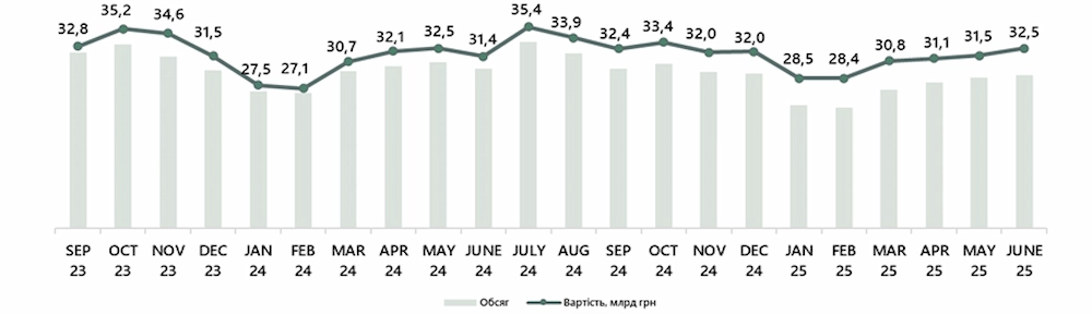 У червні обсяги продажу зросли на 1,0% порівняно з попереднім місяцем. У річному вимірі скорочення становило 3,0% до червня 2024 року та 15,1% до червня 2023 року.