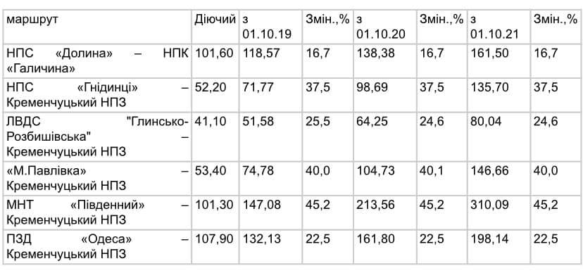Национальная комиссия, осуществляющая государственное регулирование в сферах энергетики и коммунальных услуг Украины, приняла Постановление об увеличении тарифов на транспортировку нефти оператора нефтетранспортной системы Украины «Укртранснафта» в три этапа до октября 2021 года.