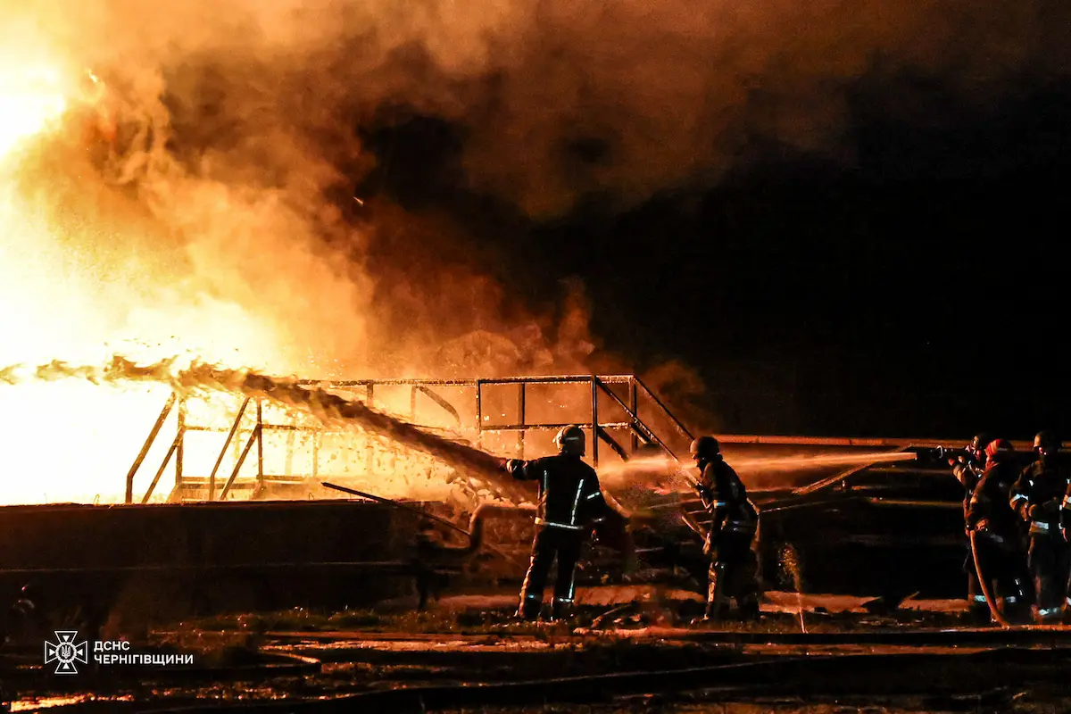 У Ніжинському районі Чернігівщини внаслідок удару чотирьох дронів сталася пожежа на нафтобазі, повідомило оперативне командування «Північ» на сторінці у FaceBook.