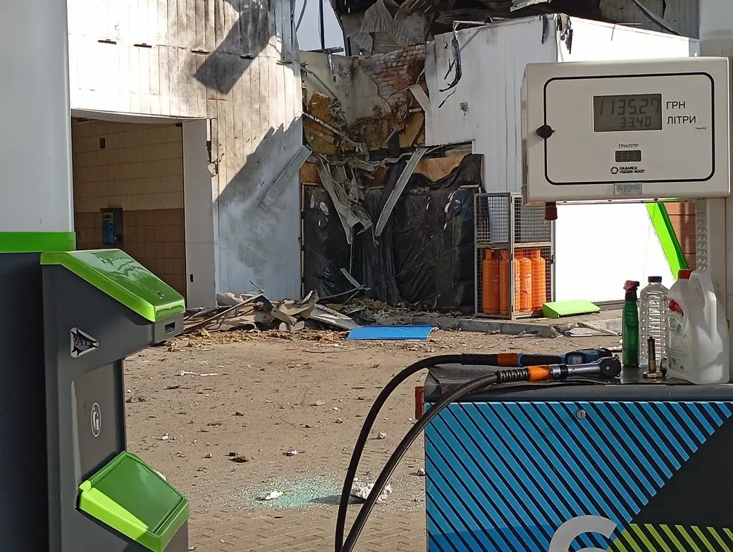 Вибух пролунав о 14:20, безпілотник влучив у дах автозаправної станції, розповіла «Суспільному» місцева жителька Олена, чий будинок розташований поруч із заправкою.