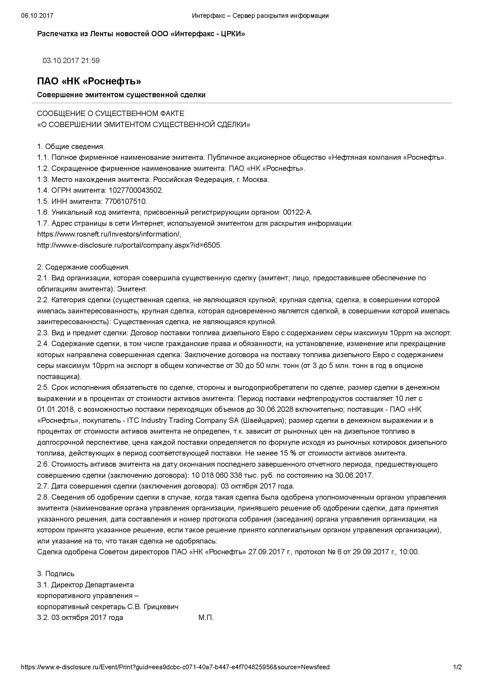 «Размер сделки в денежном выражении и в процентах от стоимости активов эмитента не определен, поскольку зависит от рыночных цен на дизельное топливо в долгосрочной перспективе, цена каждой поставки определяется по формуле», - говорится в сообщении СРКИК РФ.