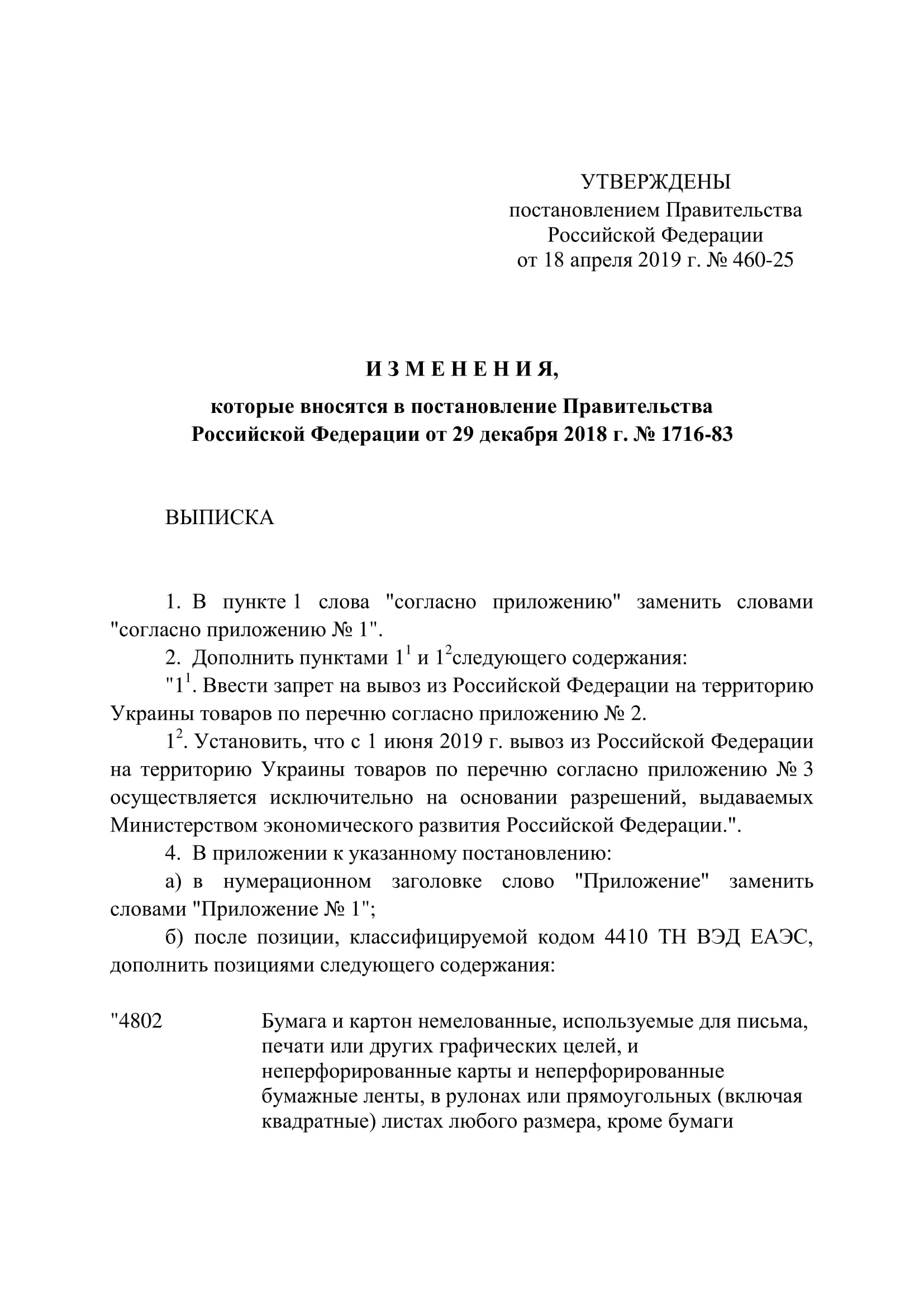 Согласно постановлению правительства Российской Федерации от 18 апреля 2019 года, с 1 июня вводится запрет на вывоз нефтяного сырья, нефтепродуктов и нефтехимии. Экспорт прямогонного бензина, бензина товарного, дизельного топлива, а также сжиженного газа будет осуществляться на основании разрешений, выдаваемых Министерством экономического развития.