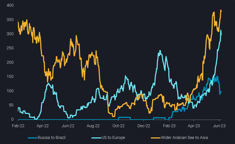 Тим часом високі обсяги поставок російського дизельного палива до Туреччини, Саудівської Аравії та ОАЕ покривають потреби внутрішнього попиту в цих країнах. Це дає їм можливість збільшувати експорт продуктів власного виробництва, який переважно прямує до Європи. Наразі Європа добре запезпечена дизпальним, зазначають аналітики Vortexa.