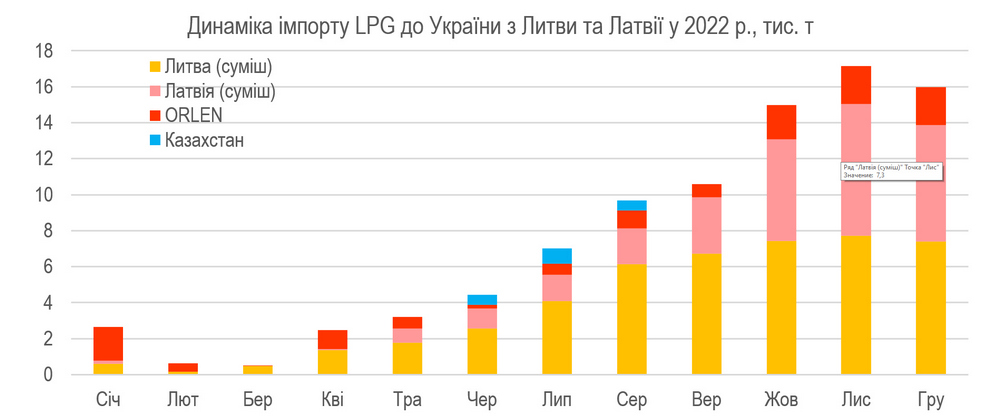 За підрахунками НафтоРинку з Литви, Латвії та частково з Естонії активно росли поставки сумішей газу автонормами у другій половині 2022 р. - на близько 75 тис. т неможливо встановити походження.