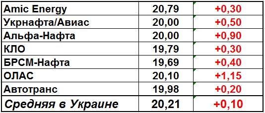 Таким образом, средние цены на дизтопливо в Украине увеличились на 10 коп/л до 20,21 грн/л.
