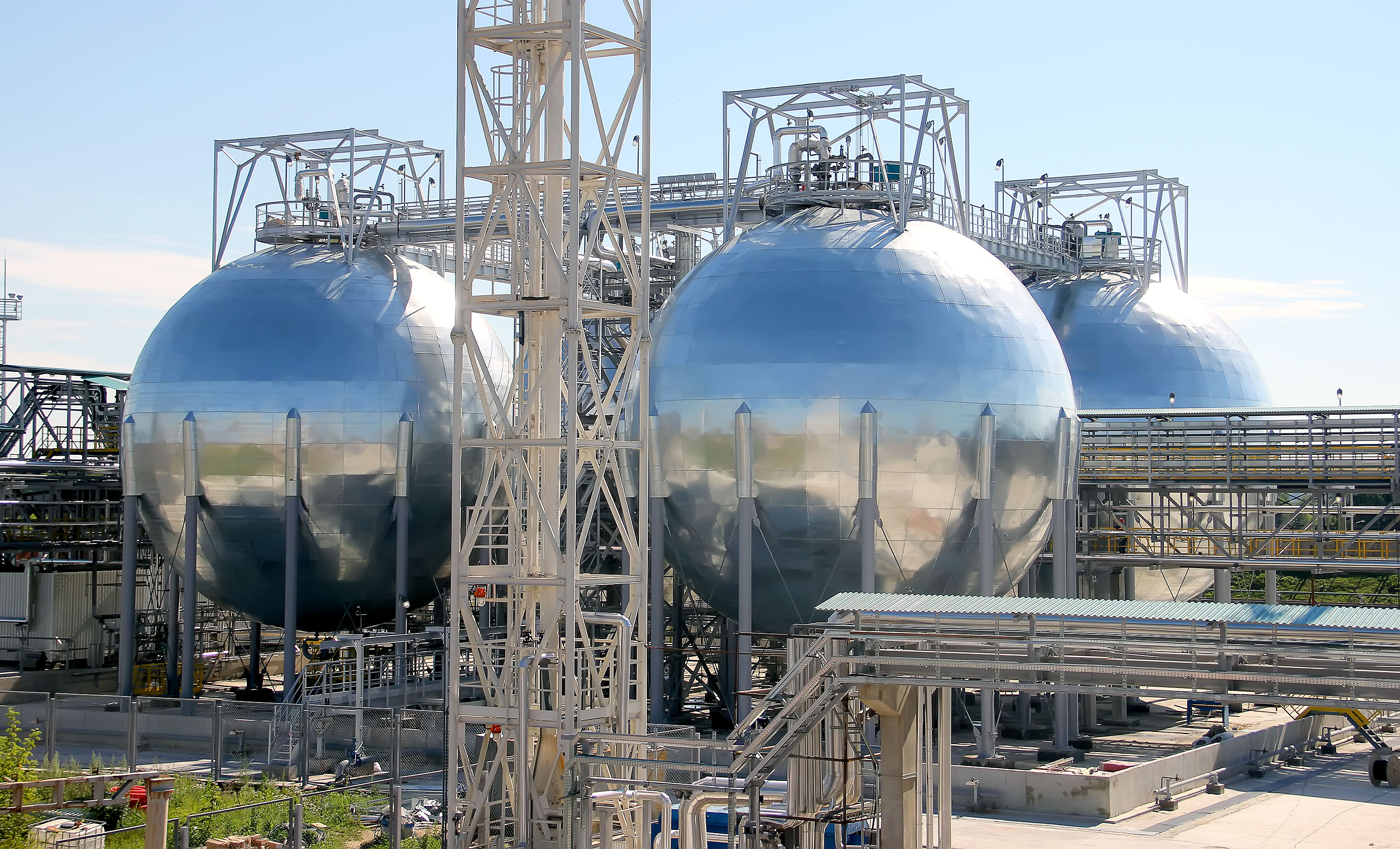 По состоянию на начало августа на площадке нового производства смонтировано более половины основного технологического оборудования. Осуществляется монтаж трубопроводов. Закончена сборка шаровых резервуаров, выполнена их термообработка, проведены гидроиспытания.