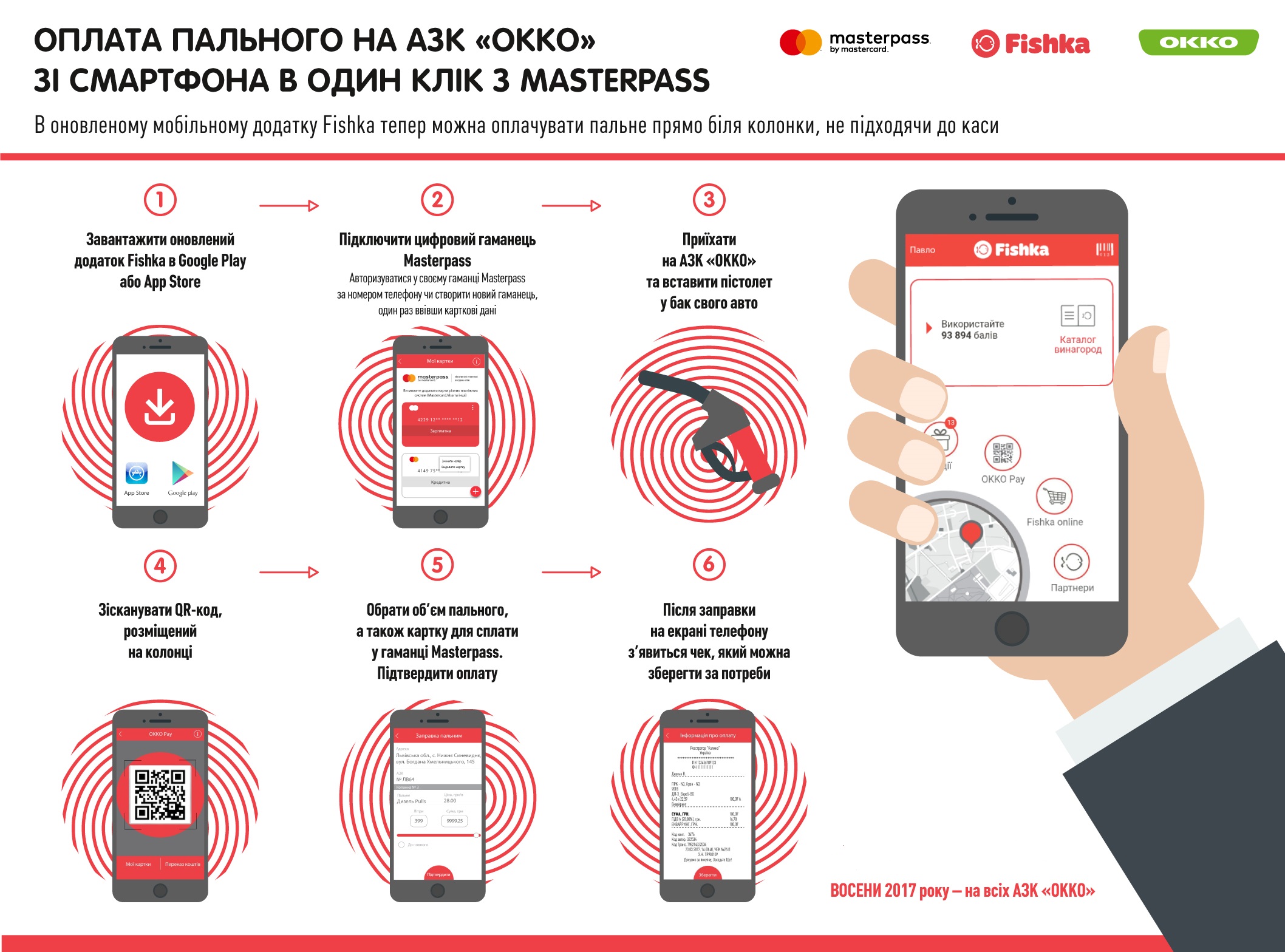 Сервис OKKO Pay для оплаты топлива на колонке со смартфона, который в середине августа начал свою работу в Киеве и Львове, теперь доступен для использования жителям еще трех городов Украины: Днепра, Одессы и Харькова. Платежное решение с интегрированной платформой цифровых кошельков Masterpass было представлено сетью АЗК вместе с компанией Mastercard в обновленной версии мобильного приложения Fishka.