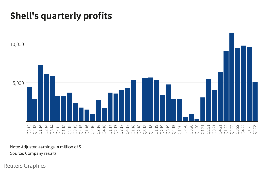 Обидві компанії не виправдали прогнози аналітиків. Кожна з них повідомила про загальний прибуток за квітень-червень у розмірі близько $5 млрд. Для Shell це на 56% менше, ніж за ІІ квартал 2022 року, а для у TotalEnergies – на 49%. Водночас, якщо порівнюівати з 2021 роком, то Shell отримала майже такий самий прибуток, тоді як TotalEnergies навіть перевершила свої результати до вторгнення Росії в Україну.