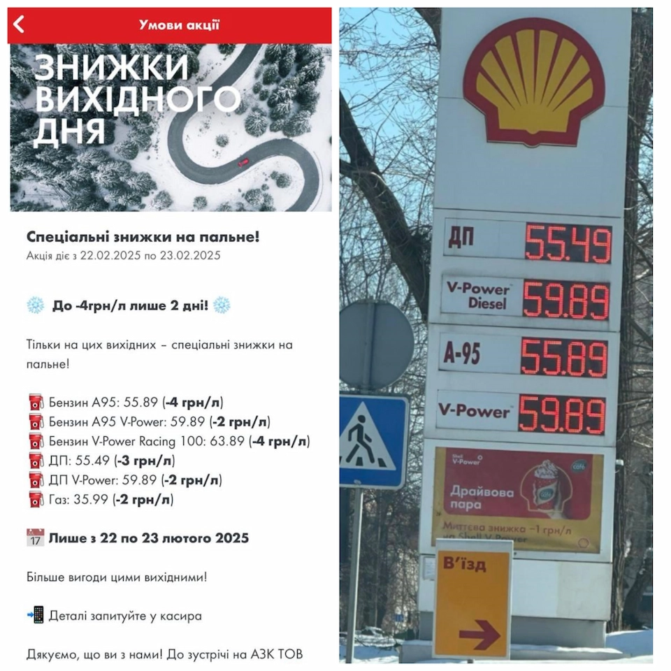 Минулими вихідними, 22-23 лютого, мережа Shell впровадила знижки на пальне до 4 грн/л. Про це клієнти могли дізнатися із мобільного застосунку мережі.