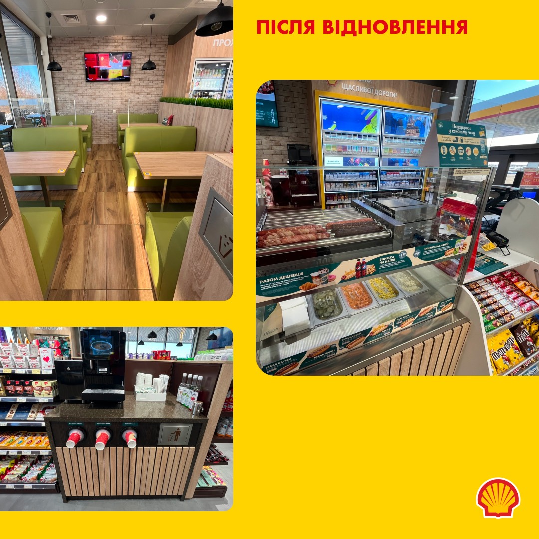 На АЗС Shell поблизу Великої Димерки водії та подорожні також мають змогу відпочити й зарядитися смачною їжею та напоями в м’якій посадковій зоні Shell Café. На місці працює і просторий магазин, в якому можна придбати все необхідне для авто та поїздки.