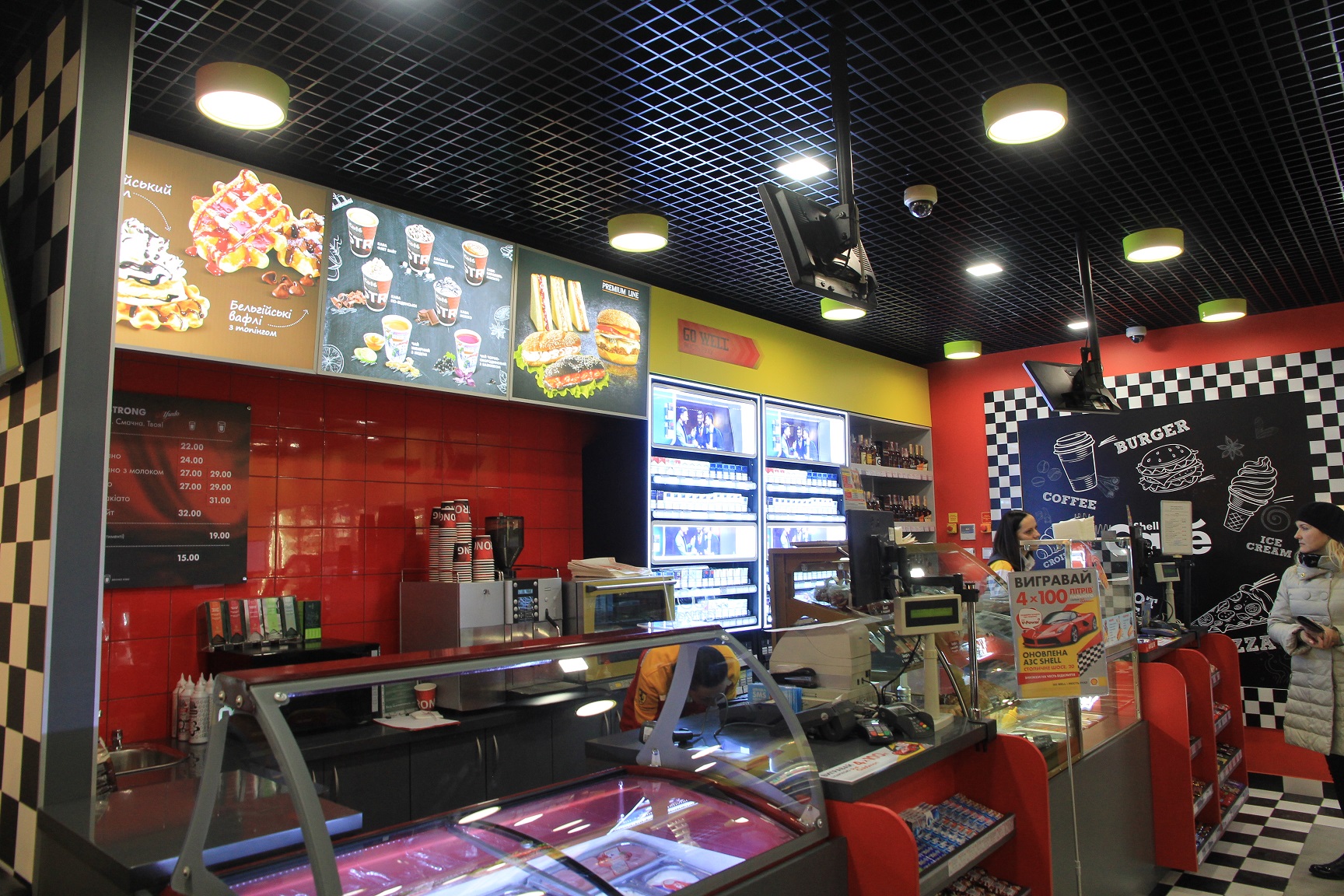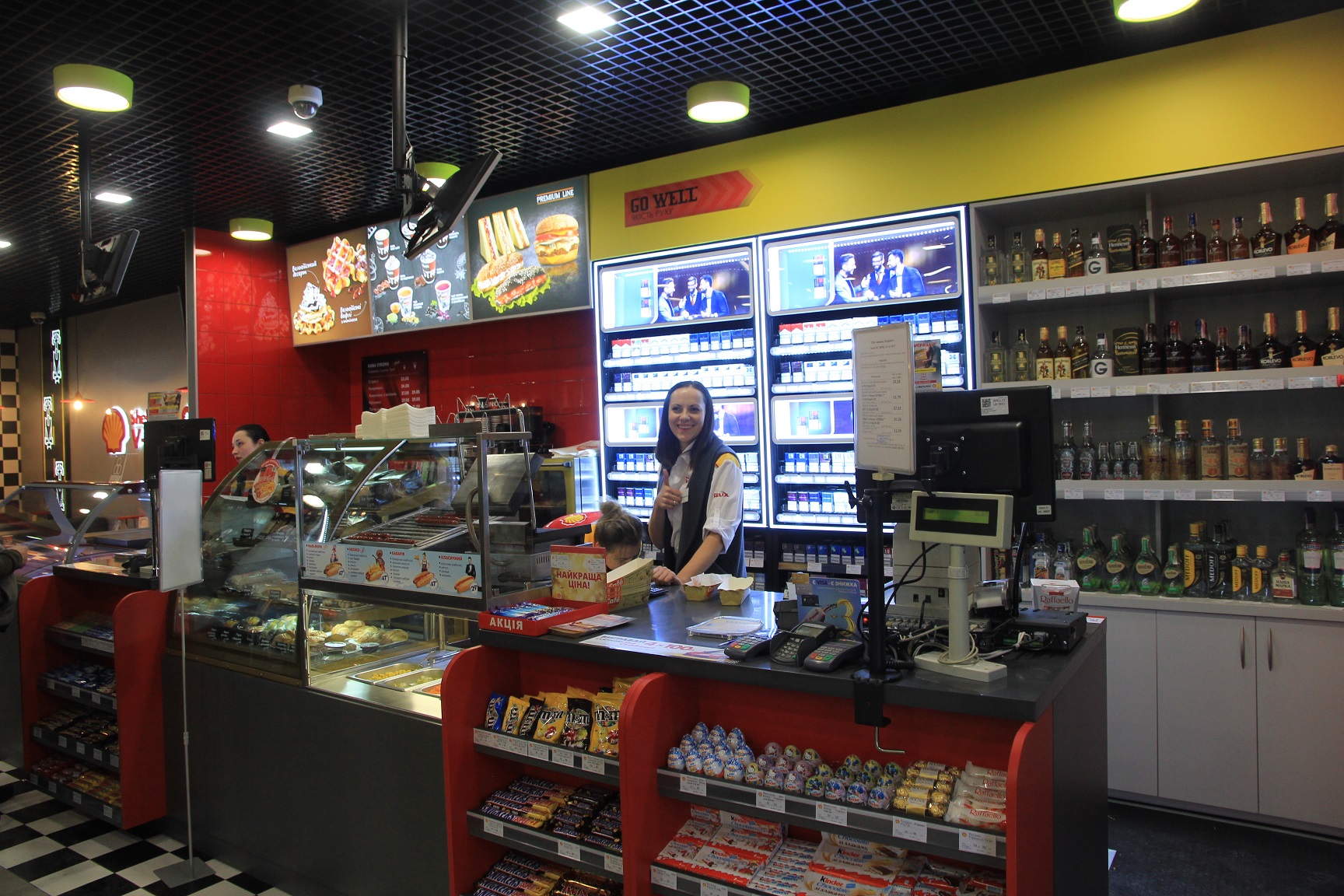 Кроме необычной атмосферы на АЗС, посетителям предлагают снеки, сезонные гарячие напитки, кофе, и премиальные хот-доги. В качестве изюминки в меню оператора есть сендвичи с лососем и тунцом.