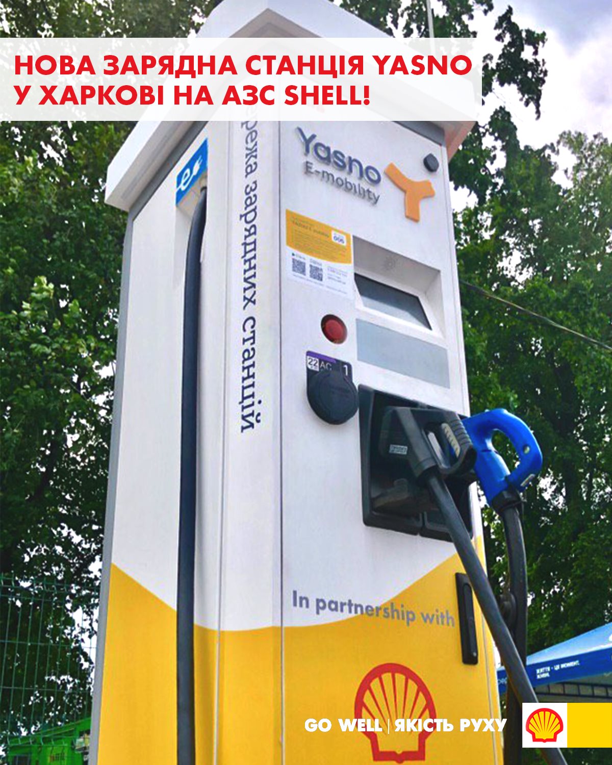 Напомним, что это уже пятая зарядная станция YASNO на АЗС Shell в Украине. Остальные четыре можно найти по адресам: