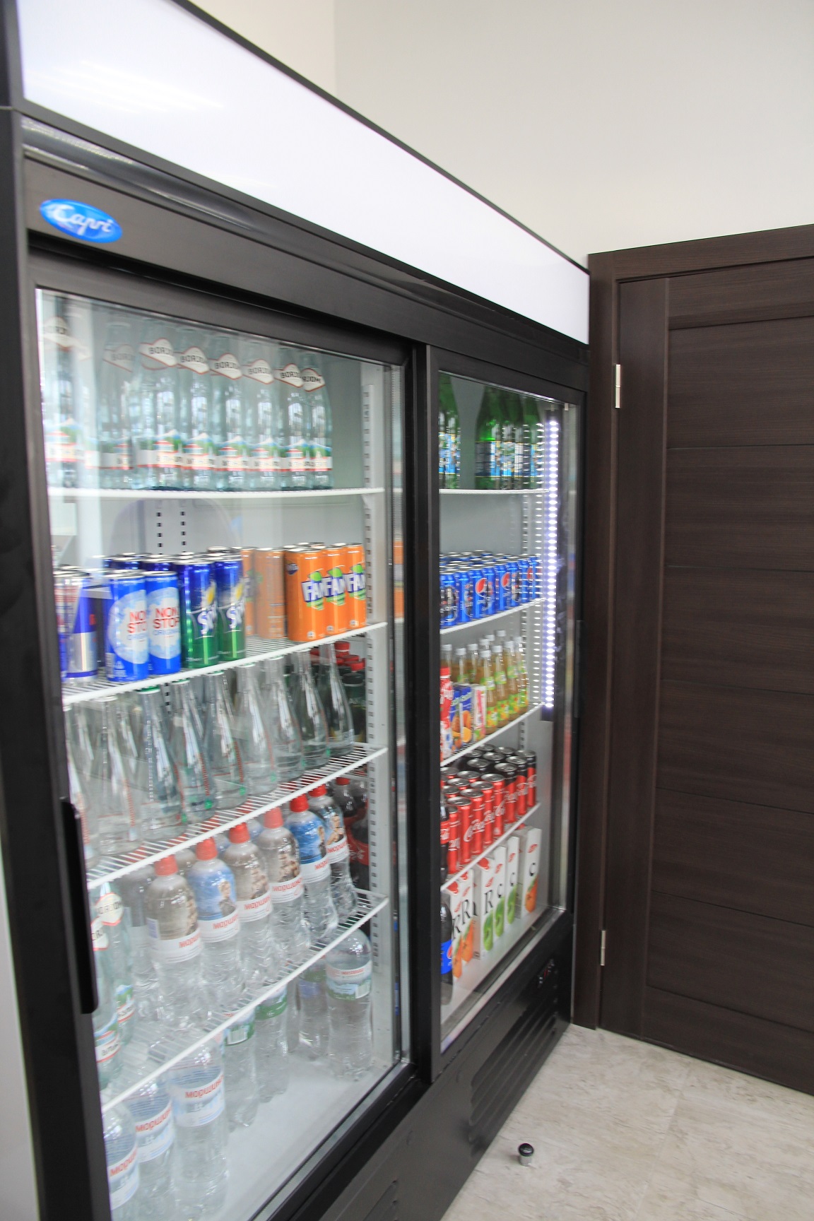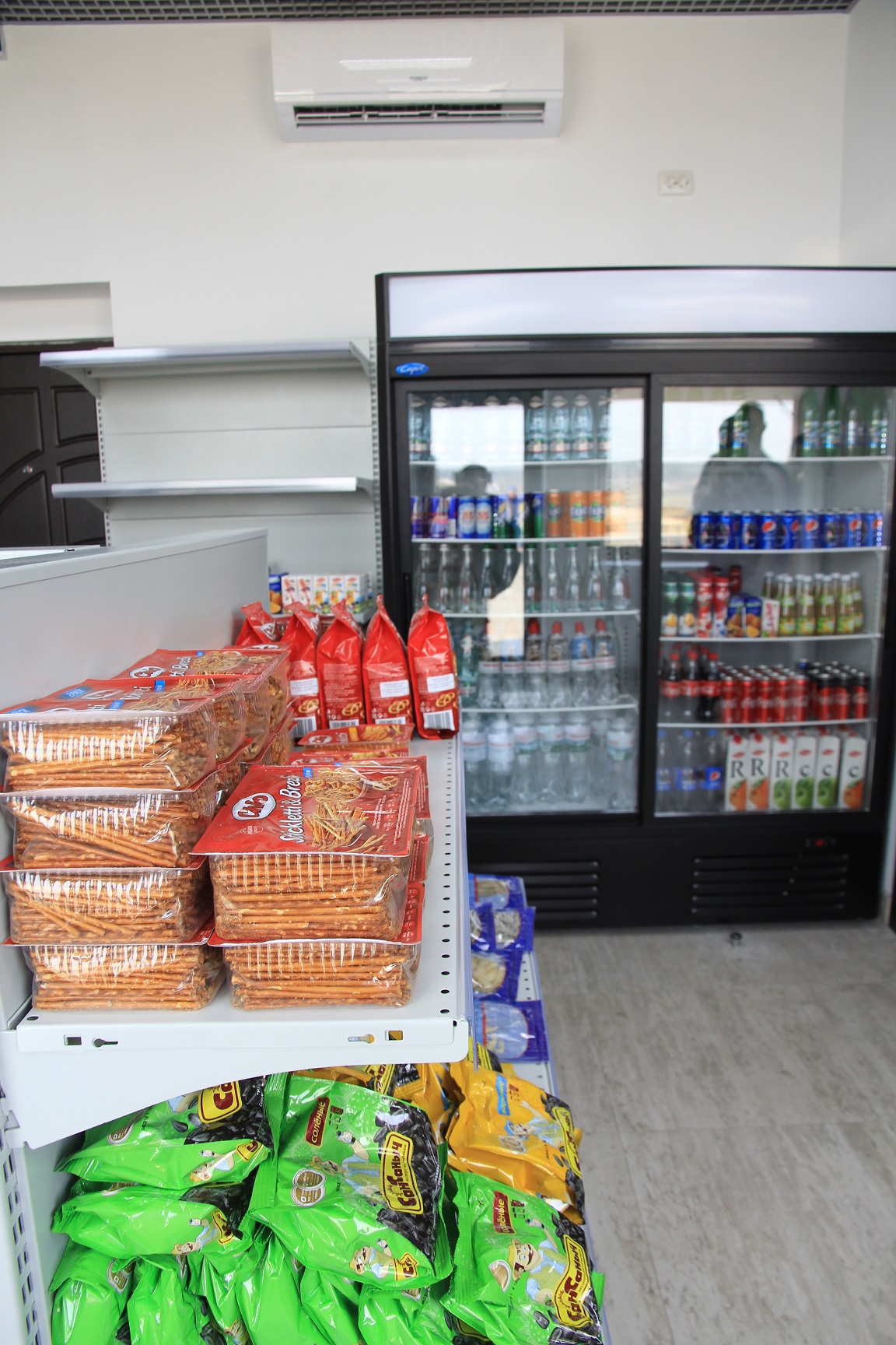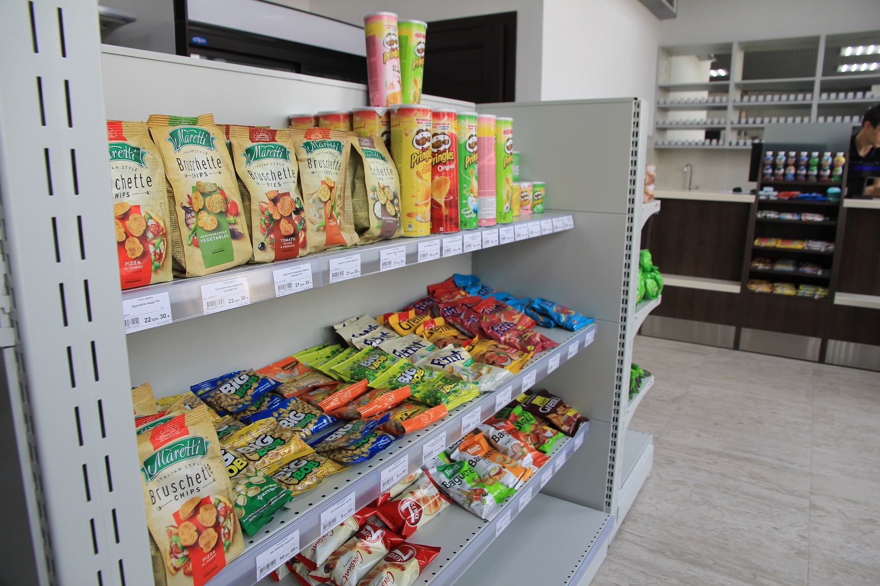 Аналогичная позиция оператора к ассортименту товаров при АЗС. В кафе готовят хот-доги с французской булкой и установлен кофе-автомат швейцарской фирмы Schaerer. Установлена плита для жарки бургеров, не говоря о стандартном наборе снеков и напитков. В скором времени компания получит лицензию для продажи алкогольных напитков и табачных изделий. Также, оператор уже ввел программу лояльности для своих первых клиентов.