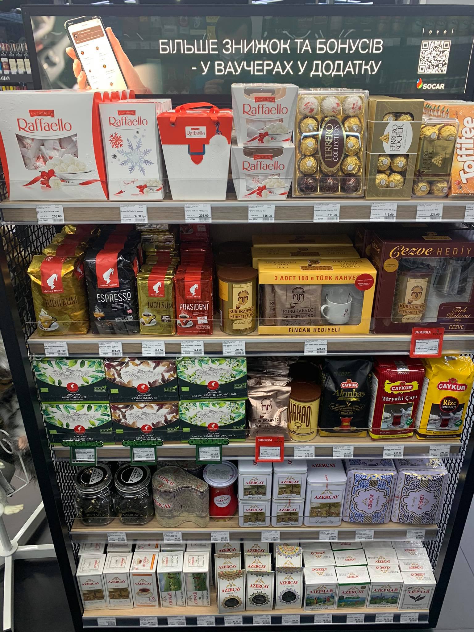 В НефтеРынке отмечают, что представлен максимально широкий выбор бакалеи и алкоголя. Островок холодильник - одно из отличий от станции на «столичке». Кроме того, есть выбор восточных сладостей азербайджанского и турецкого производства.