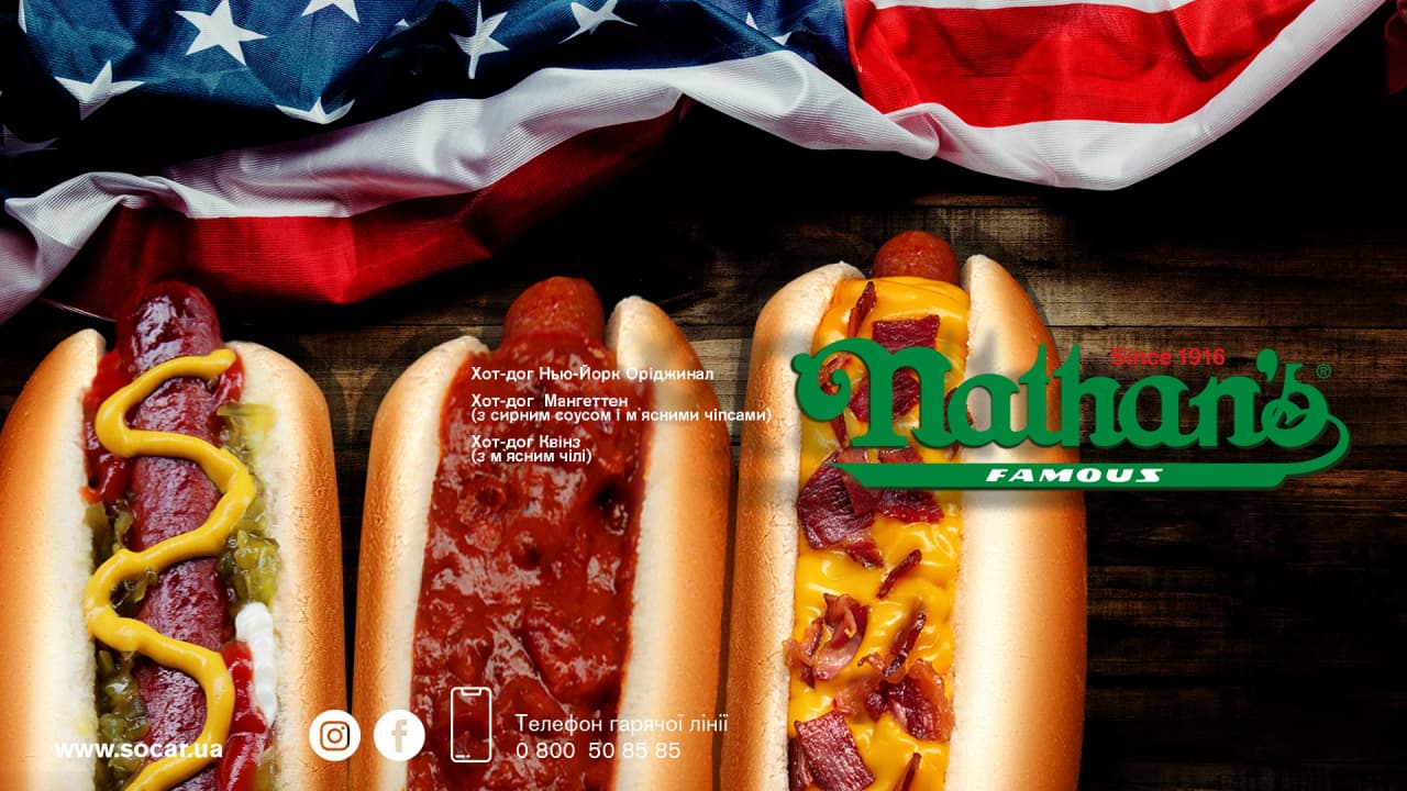 Популярная американская сеть хот-догов Nathan's Famous открывается в Украине. Развивать франшизу знаменитого стрит-фуда на отечественном рынке будет Группа компаний «SOCAR Украина». Продажи уже стартовали на 6 АЗК в Киеве. Через несколько месяцев компания планирует запустить продажи Nathan's также в других областях Украины.
