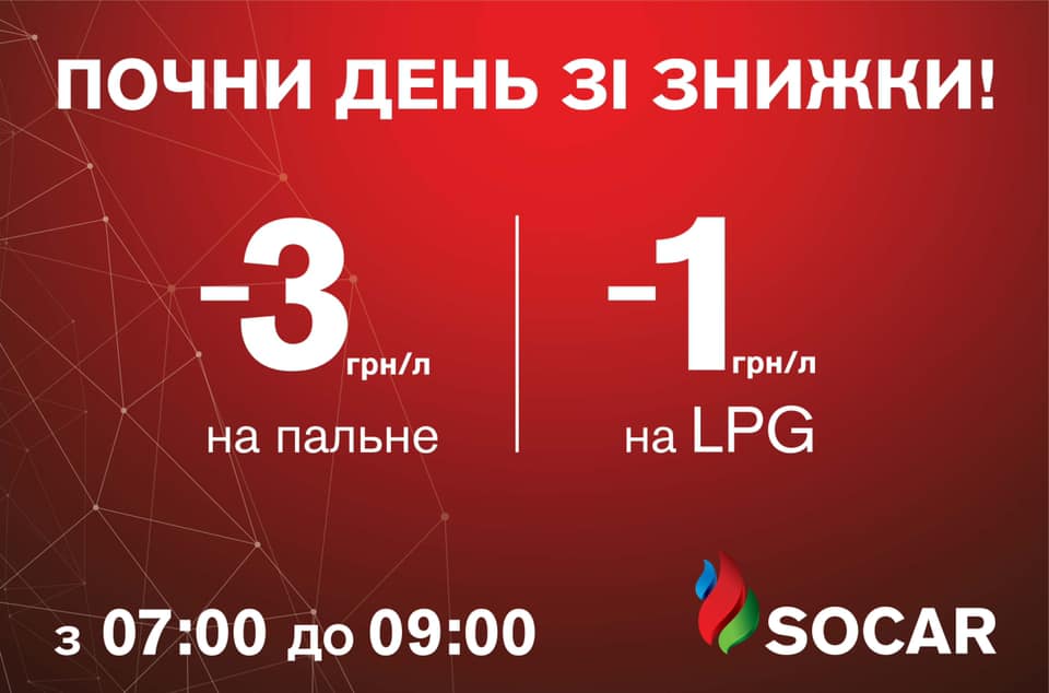 Так, клиенты, которые заправяться с 7.00 до 9.00 получат скидки: -3 грн/л на бензин/ДТ и -1 грн/л на LPG. Отметим, что скидки действуют на следующих АЗК.