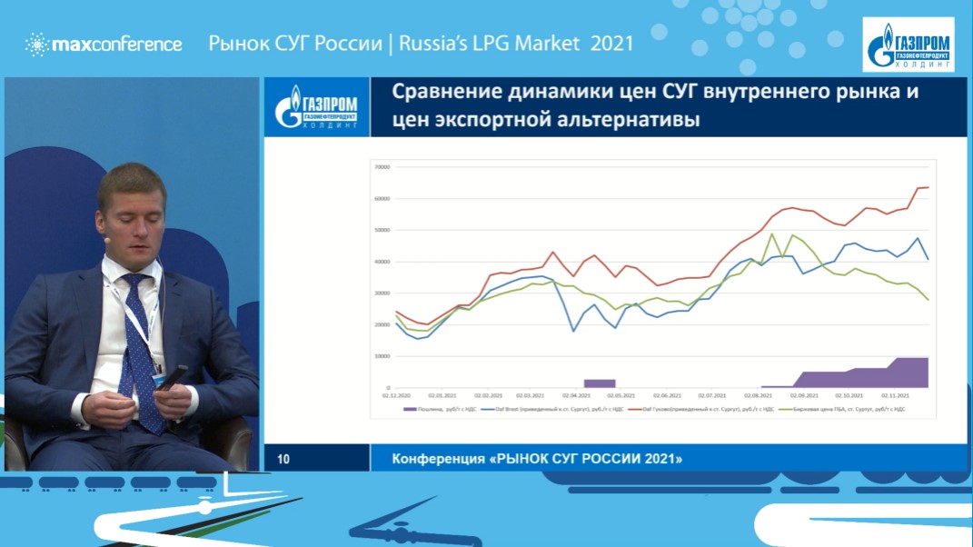 «В начале октября от ФАС было письмо для участников рынка с рекомендаций максимального уменьшения объемов экспорта, и направления газа на внутренний рынок. При этом, по котировкам видно, что экспортные цены значительно выше» – отмечает участник конференции.