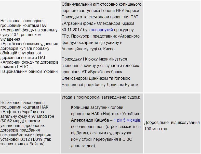 По нижеуказанным приговорам, осуждённые возместили 123,34 млн грн., львиная доля которых - это взносы Кацубы и Сухомлина.