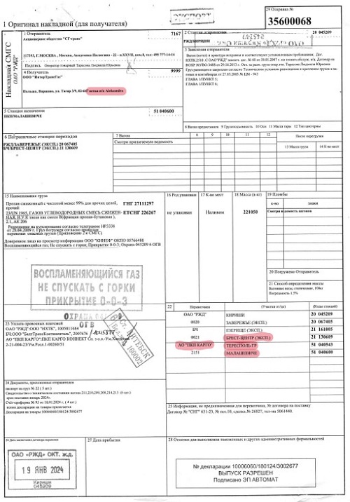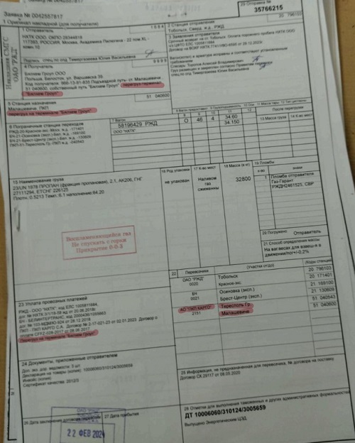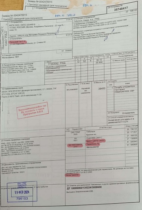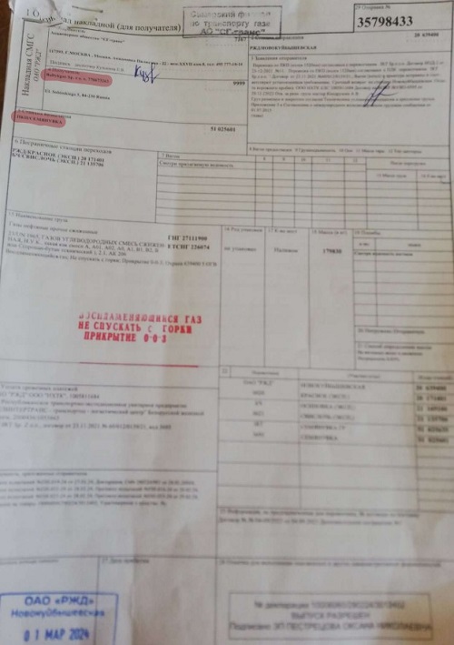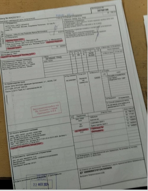 НафтоРинок проаналізував низку транспортних документів на скраплений газ за 2024 рік. Зокрема, накладні СМГС РЖД, копії яких є в редакції.