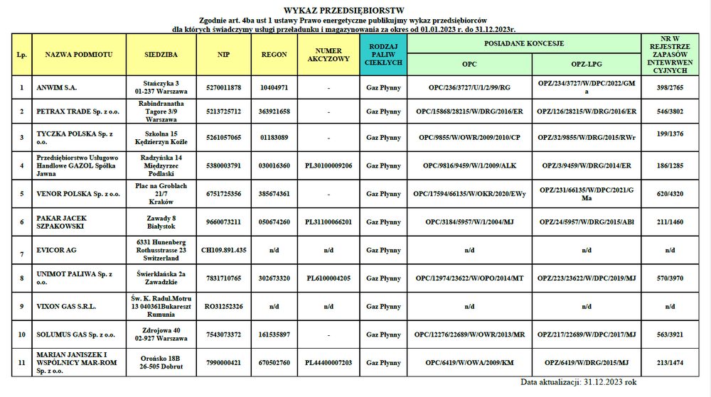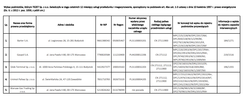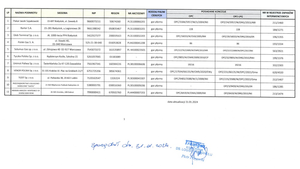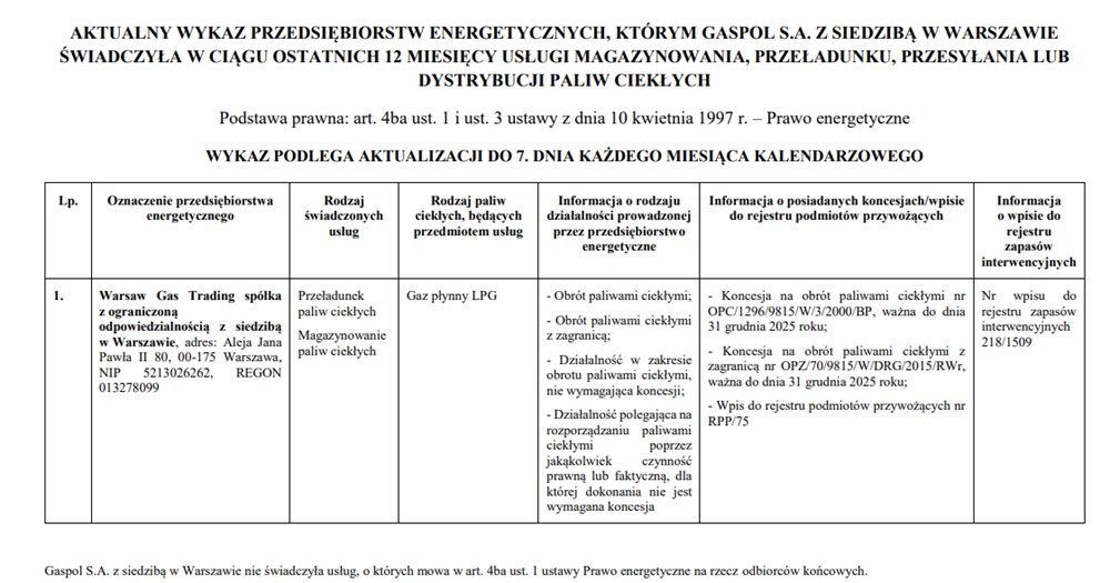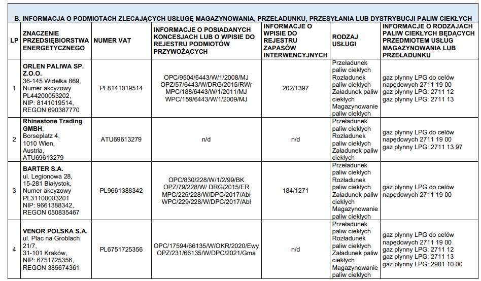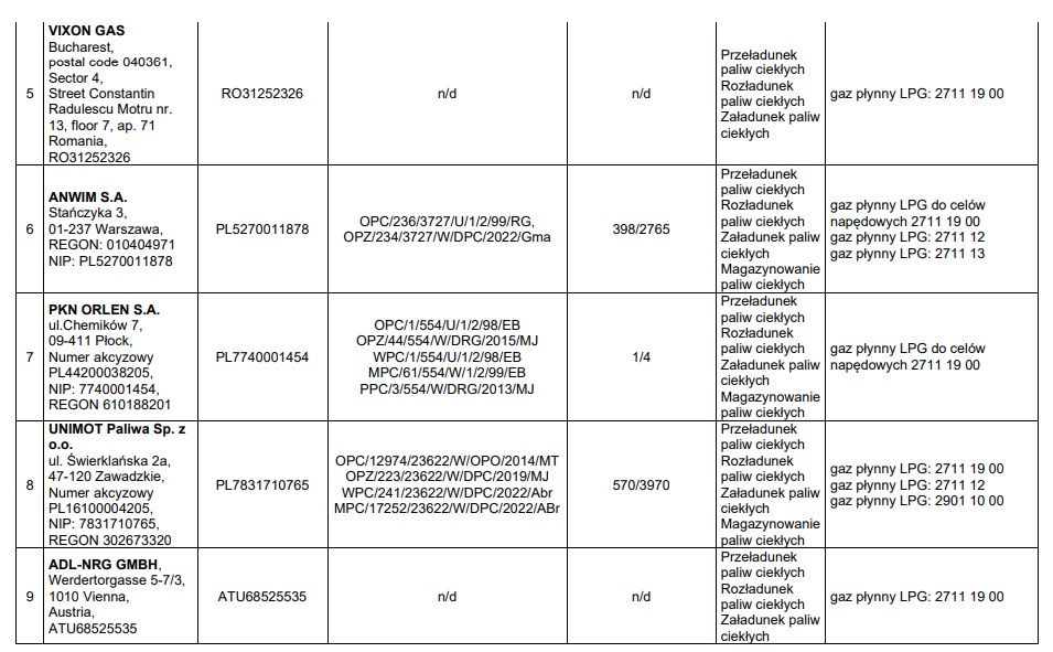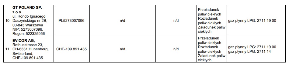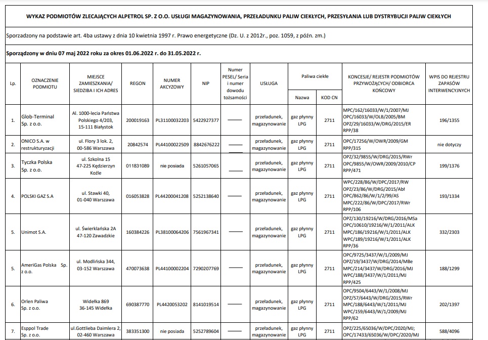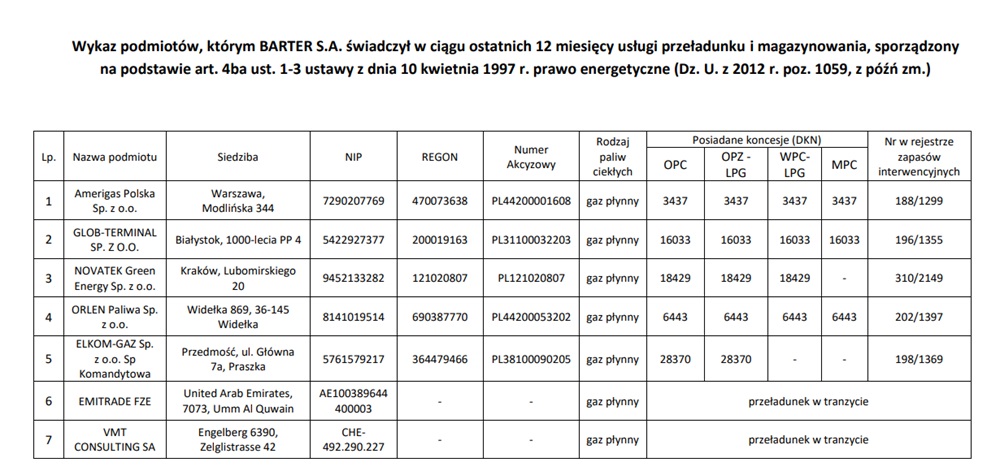 Відповідно до ст. 4ba розділ 1-3 Закону від 10 квітня 1997 р. Закону про енергетику Польщі (Закон. вісник 2012 р., поз. 1059, зі змінами), оператори терміналів Польщі зобов'язані публічно розкривати перелік суб'єктів, яким протягом останніх 12 місяців надавали послуги з перевантаження та зберігання. НафтоРинок дослідив перелік користувачів послуг перевалки LPG-терміналів, з яких надходить пропан-бутан до України.